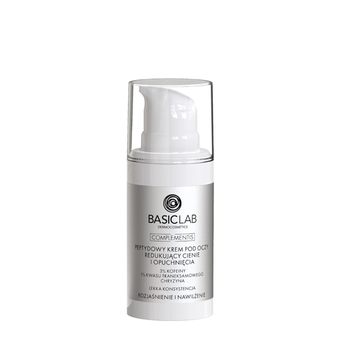 BasicLab - Izgaismošana un Mitrināšana - Peptīdu Krēms Ādai zem Acīm Tumšo Loku un Pietūkumu Mazināšanai - 15ml