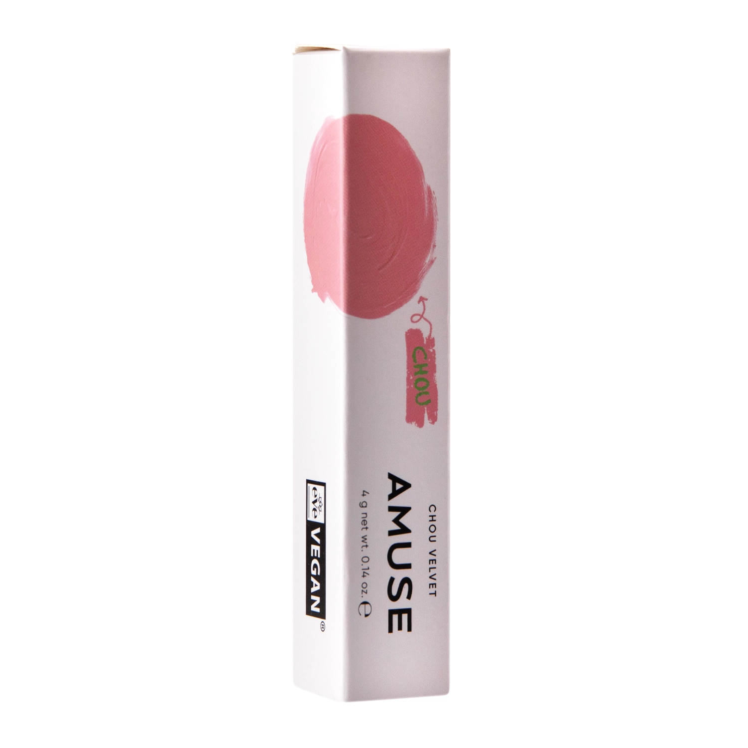 Amuse - Chou Velvet - 01 Boksoonga Chou - mitrinoša lūpu tinte ar satīna finišu. Tai ir maigs rozā tonis un krēmīga tekstūra, kas nodrošina vieglu uzklāšanu un vienmērīgu krāsas pārklājumu pa visām lūpām. Sastāvā esošā hialuronskābe un keramīdi palīdz uzturēt optimālu mitrināšanu un aizsargā lūpas no sausuma. Savukārt ilgnoturīgā formula ir izturīga pret izsmērēšanos un berzi. Produkts ir vegānisks.