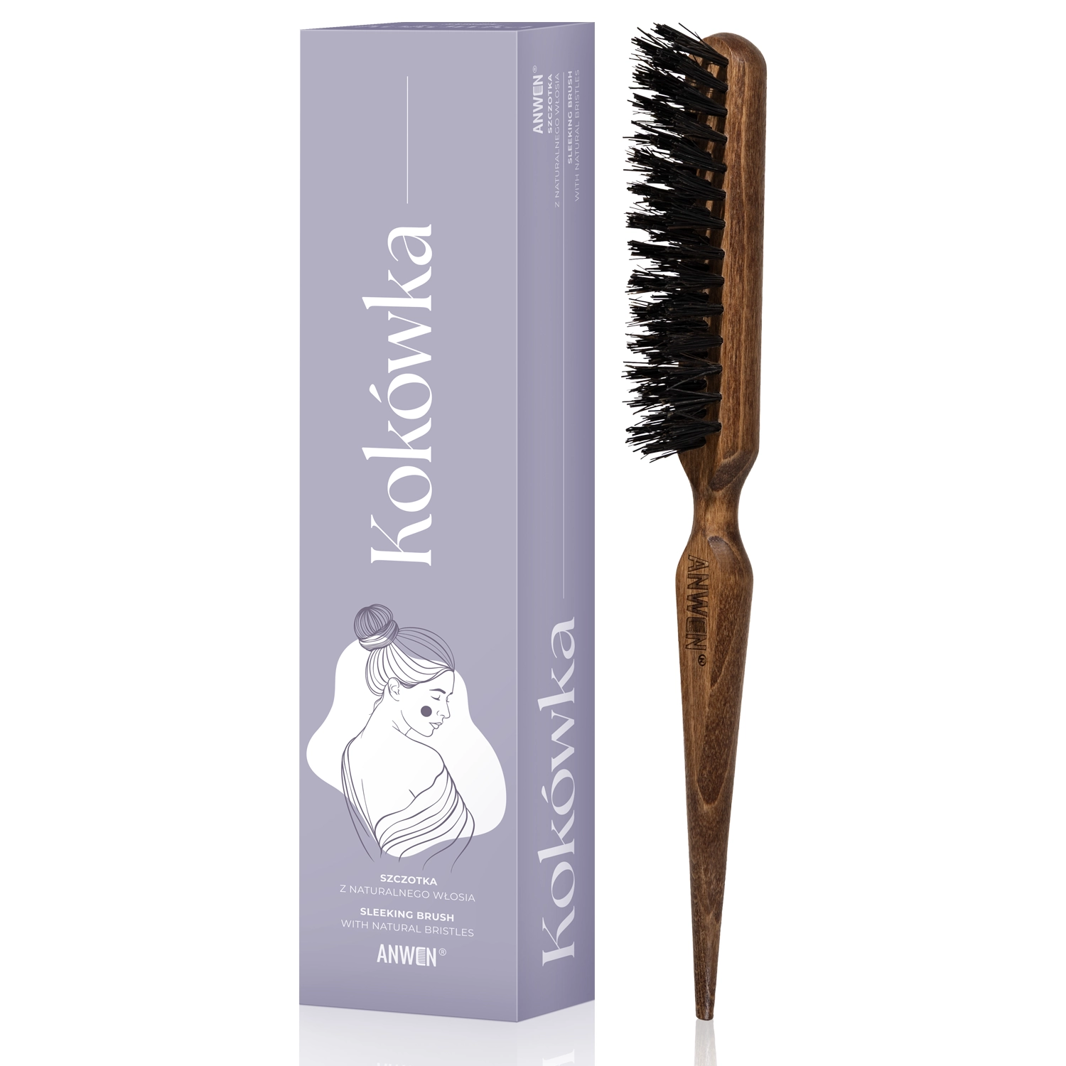 Anwen - Kokovka - matu birste, kas izgatavota no dabiska dižskābarža koka un meža cūkas sariem. Tā ir lieliski piemērota gludu frizūru veidošanai - piemēram, sleek bun, gludai zirgastei vai citiem sakārtotiem matu sakārtojumiem. Ergonomiskā forma ērti ieguļ rokā, bet smailais gals atvieglo matu šķiršanu un sadalīšanu sekcijās. Meža cūkas sari ir izvietoti 3 sekcijās, un pati birste ražota Polijā. Birstes garums ir apmēram 22,5 cm, platums – 1,8 cm.