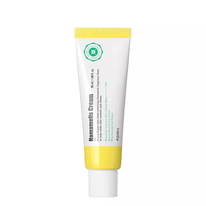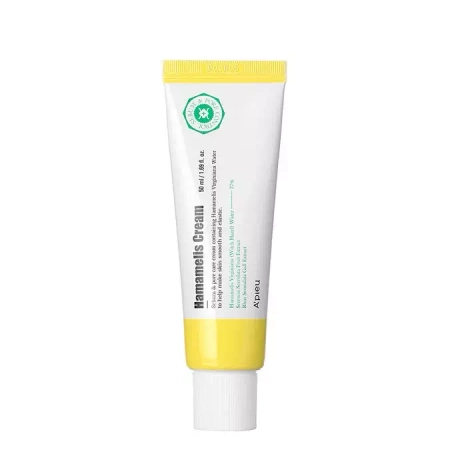 A'pieu - Hamamelis Cream - krem do pielęgnacji skóry twarzy, szyi i dekoltu. Kompozycja opiera się na bazie hydrolatu z liści oczaru wirginijskiego, który pozytywnie wpływa na cerę z niedoskonałościami. Zwęża pory, odświeża tłustą cerę. W połączeniu z niacynamidem widocznie poprawia koloryt skóry i zmniejsza ilość niedoskonałości. Zawartość oleju arganowego i sezamowego wspiera pracę naturalnej bariery hydrolipidowej i zapobiega utracie wody z naskórka. Regularnie stosowany krem może okazać się cennym elementem codziennej pielęgnacji skóry.