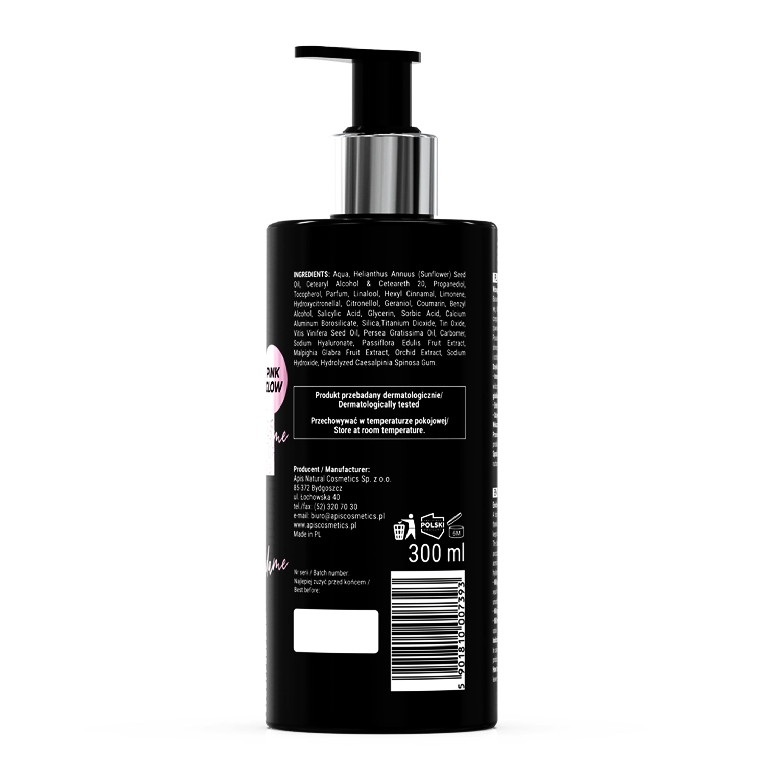 Apis - Rose Madame - Izgaismojošs Ķermeņa Balzams - dabiskais ķermeņa balzams ar austrumnieciskas rozes, apelsīna, jasmīna un pačūlijas aromātu, kas izgaismo ādu, radot "pink glow" efektu. Produkta formula ir bagāta ar barojošām sastāvdaļām, tostarp saulespuķu un avokado eļļām, kas mīkstina, izlīdzina un padara ādu elastīgāku. Vīnogu kauliņu eļļai piemīt antibakteriālas īpašības, savukārt nātrija hialuronāts palīdz samazināt ūdens zudumu no epidermas, kā arī veicina reģenerāciju un izlīdzina ādu. Papildus pasifloras ekstrakts atjauno, baro un nomierina ādu, bet vērtīgais C vitamīna avots - acerolas ekstrakts - sniedz antioksidējošu un pretgrumbu iedarbību.