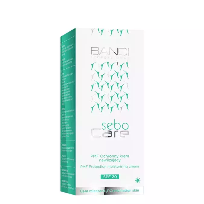 Bandi - Sebo Care - aizsargājošs mitrinošs krēms SPF20 - krēms jauktai ādai, kas efektīvi regulē pārmērīgu sebuma izdalīšanos, pateicoties tā sastāvā esošajiem fermentiem. Turklāt tas mitrina, atjauno un uzlabo ādas tonusu, pateicoties PMF sastāvdaļas un hialuronskābes iedarbībai. Krēms nodrošina arī zemu saules aizsardzības faktoru SPF20, pateicoties UV starus absorbējošiem ķīmiskajiem filtriem. Produkts piemērots vegāniem.