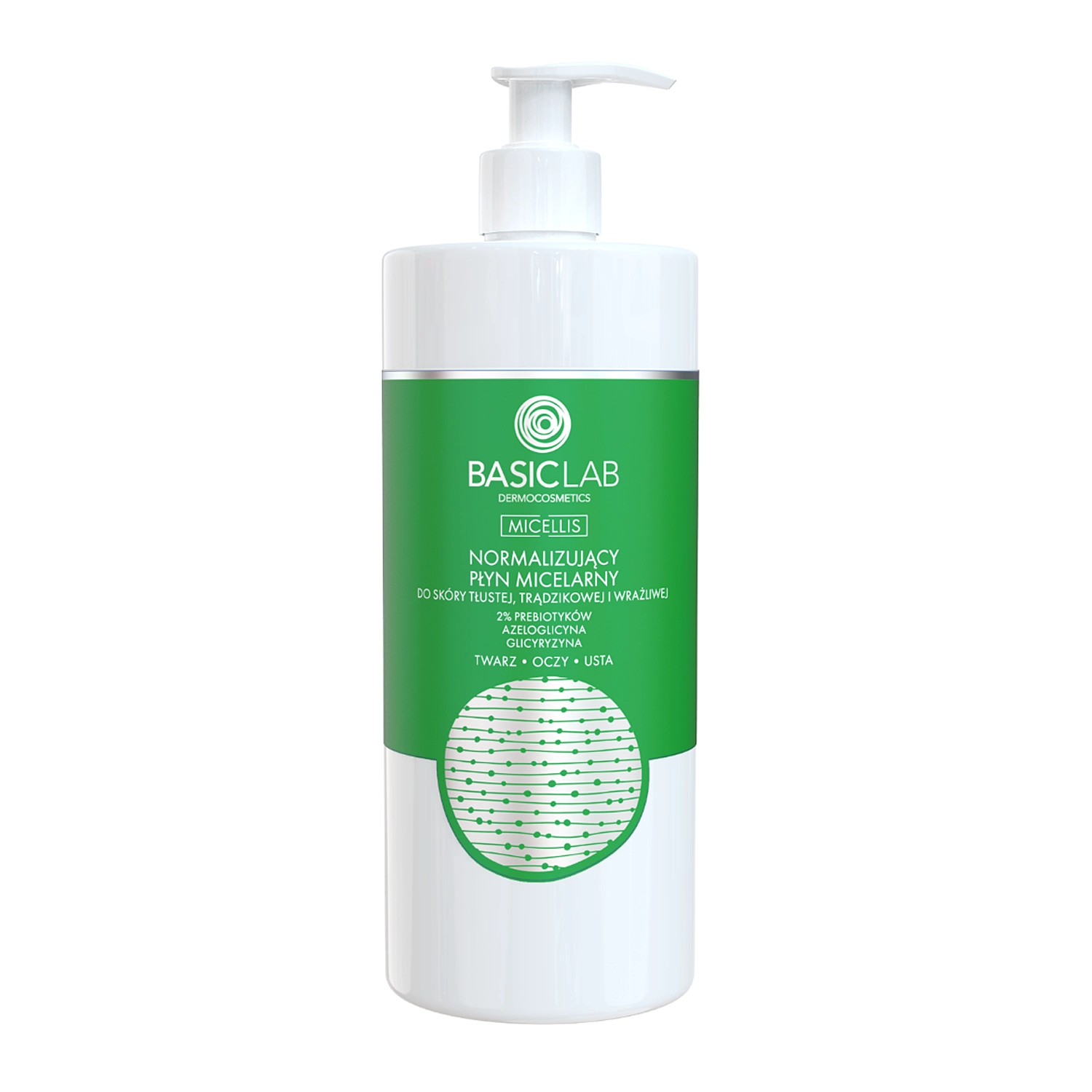 BasicLab micelārais šķidrums ar normalizējošu iedarbību taukainai, uz akne tendētai un jutīgai ādai
