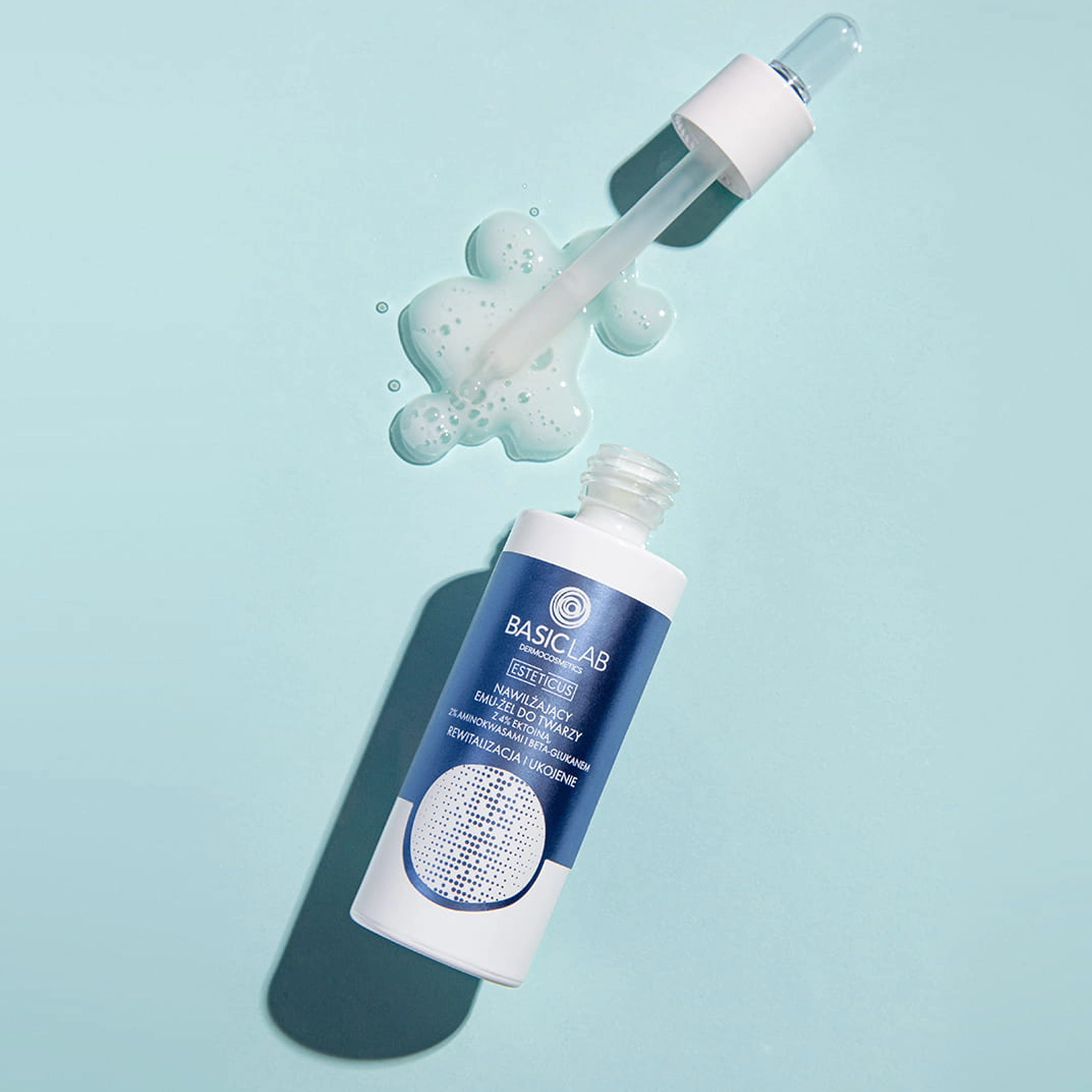BasicLab - Esteticus - Reģenerācija un Nomierināšana - sejas serums ar mitrinošu un atjaunojošu iedarbību. Formulas sastāvā esošais ektoīns, glikonolaktons, aminoskābes un trehaloze nodrošina dziļu un ilgstošu ādas mitrināšanu. Keramīdi stiprina un atjauno hidrolipīdu barjeru, savukārt beta glikāns palīdz mazināt kairinājumu un piešķir ādai komforta sajūtu. Serumam ir pienaina, emulsijas konsistence, tas ātri uzsūcas un atstāj ādu mitrinātu un ar veselīgu mirdzumu. Produkts piemērots jutīgai, sausai, nobriedušai, kā arī taukainai un problemātiskai ādai. Tas efektīvi nomierina sakairinātu ādu un atjaunot tās komfortu un maigumu.