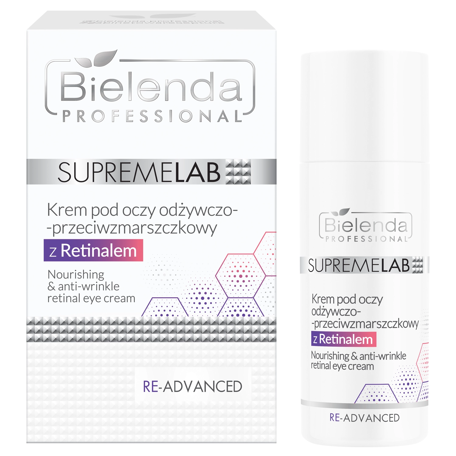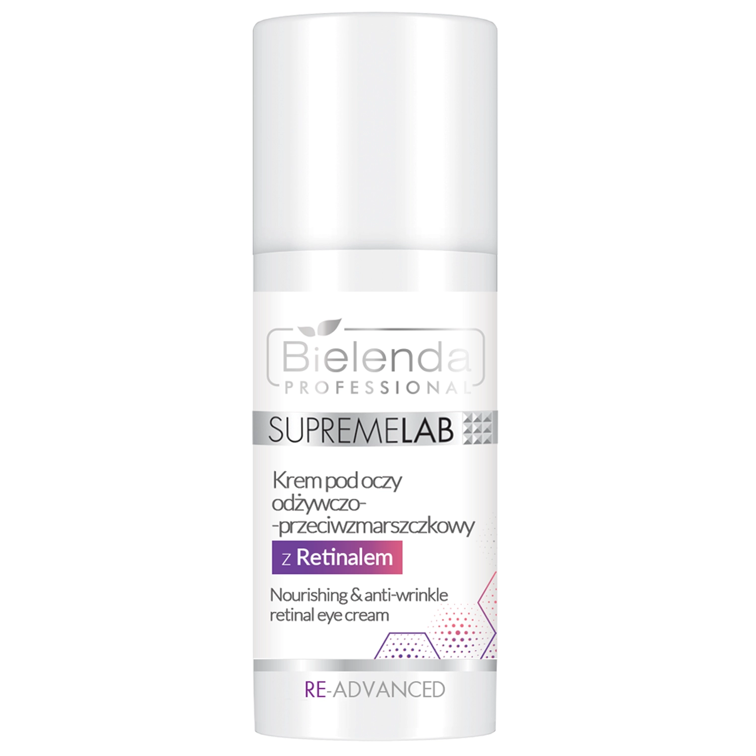 Bielenda Professional - Supremelab - Barojošs un Pretgrumbu Acu Krēms ar Retinolu - nakts acu krēms nobriedušai un dehidrētai ādai, kā arī un ādai ar redzamām novecošanās pazīmēm. Tā sastāvā esošajam retinolam (0,03% koncentrācijā) piemīt pretnovecošanās īpašības - tas palīdz samazināt grumbas un uzlabo ādas tvirtumu un elastību. Fosfolipīdi veicina ādas dabiskos atjaunošanās procesus un sniedz patīkamu nomierinājuma sajūtu. Ektoīns nodrošina optimālu ādas mitruma līmeni, bet prebiotiķis inulīns uztur ādas mikrobioma līdzsvaru un stiprina tās dabisko aizsardzību pret ārējās vides faktoriem un patogēniem. Kompozīciju papildina sojas eļļa, kas intensīvi baro ādu ap acīm un palīdz atjaunot tās hidrolipīdu barjeru. Krēms ir iepakots higiēniskā airless trauciņā, kas nodrošina precīzu dozēšanu, pasargā formulu no gaisa un piesārņojuma, un garantē ilgāku svaigumu un efektivitāti.