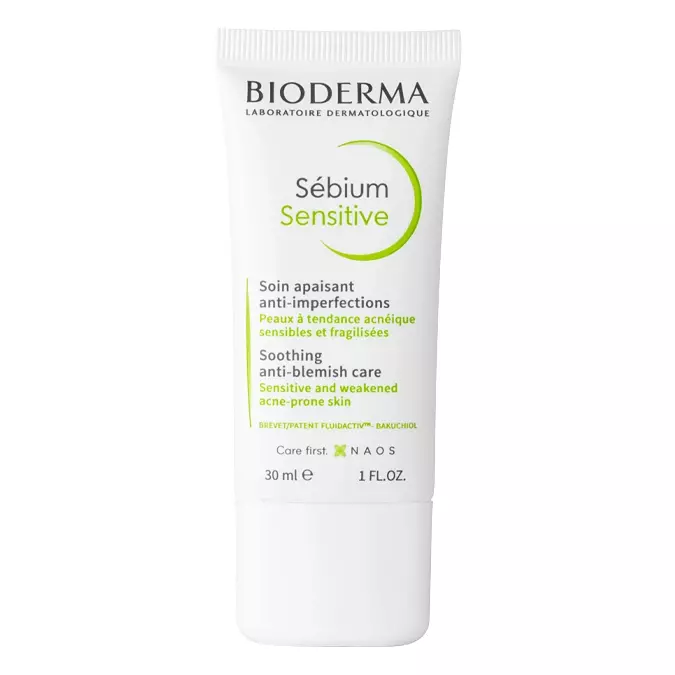Bioderma - Sebium Sensitive - krēms ādai ar nepilnībām. Lai apmierinātu tās vajadzības, produkts tika apgādāts ar pretiekaisuma vielu - gliciretīnskābi, kas paātrina aknes dzīšanu un samazina ādas apsārtumus. Turklāt vērtīga krēma sastāvdaļa ir bakučiols - dabiskas izcelsmes viela, kas stimulē audu atjaunošanas procesus. Savienojumā ar ginkgo biloba ekstraktu tās stiprina ādas vispārējo stāvokli un arī palēnina ādas novecošanās procesus. Ogļhidrātu komplekss, kura sastāvā ir tostarp mannīts un ramnoze, nodrošina atbilstošu ādas mitrināšanu, kas ir ļoti svarīga ikdienas aizsardzībā pret nepilnību veidošanos.