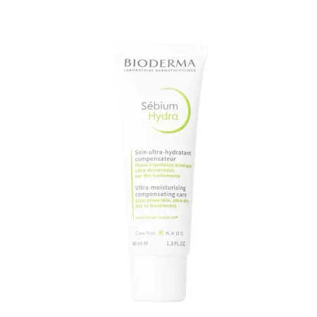 Bioderma - Sebium Hydra - mitrinošs krēms akneinozajai ādai - atjaunojošs sejas krēms. Satur mitrinošas vielas, kas rūpējas par ādas stāvokli. To vidū ir, piemēram, mannīts, ksilitols, ramnoze vai brūnalģu ekstrakts. Alantoīns un Ceramide 3 nomierina kairinājumus un ievērojami atbalsta ādas dabiskos atjaunošanās procesus. No lakricas saknes iegūtā glicirizīnskābe ir pazīstama ar savām pretiekaisuma īpašībām, turklāt tā atbalsta apsārtumus samazināšanos un nodrošina antioksidāciju.