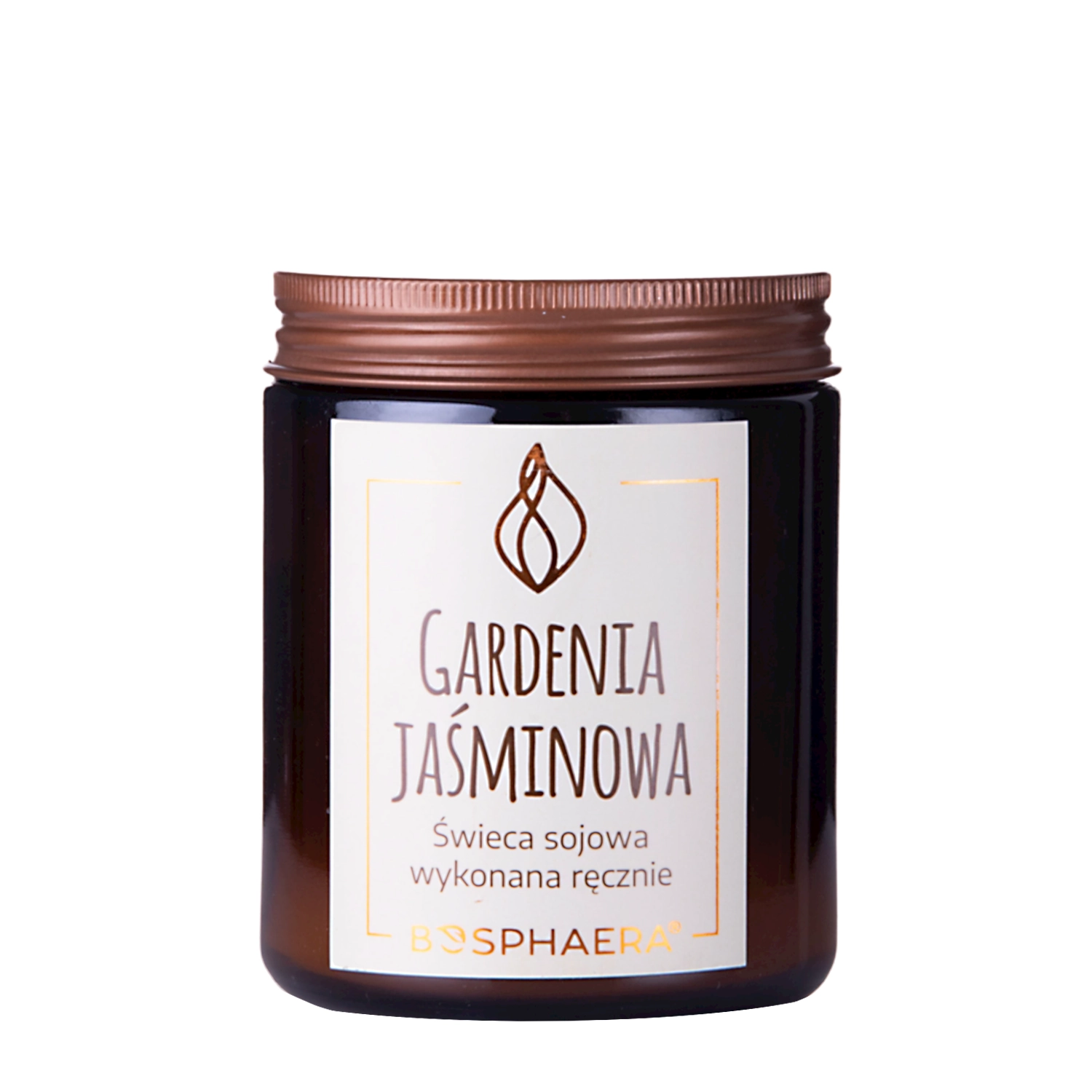 Bosphaera - Sojas svece - Gardenija - dabiska, videi draudzīga, ar rokām darināta sojas vaska svece. Tai piemīt gardenijas aromāts ar smalku jasmīna noti, kas nomierina un rada harmonijas sajūtu. Svecei ir koka dakts, kas degšanas laikā rada vasaras ugunskura sprakšķiem līdzīgu skaņu. Produkts iepildīts ekoloģiskā, elegantā, tumša stikla traukā, kuru pēc izlietošanas var viegli iztīrīt un izmantot atkārtoti.