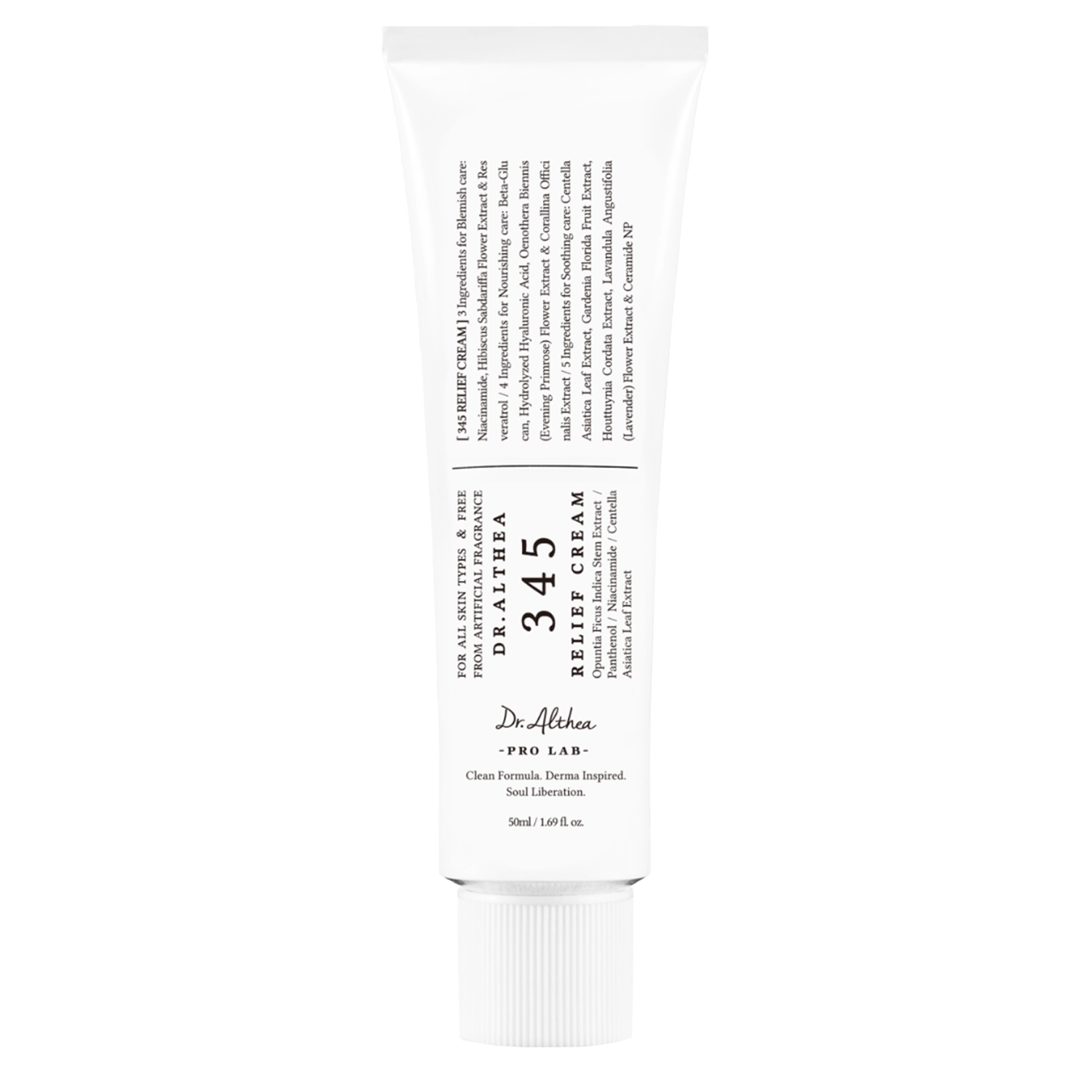 - Dr. Althea - 345 Relief Cream - krēms ar vieglu tekstūru - ideāli piemērots ikdienas lietošanai. Tā formula, kuras pamatā ir resveratrols, atbalsta ādas dabiskos reģenerācijas procesus. Pievienotais nātrija hialuronāts uzlabo mitruma līmeni, savukārt pantenols palīdz samazināt iekaisumu. Tilpums: 50 ml.