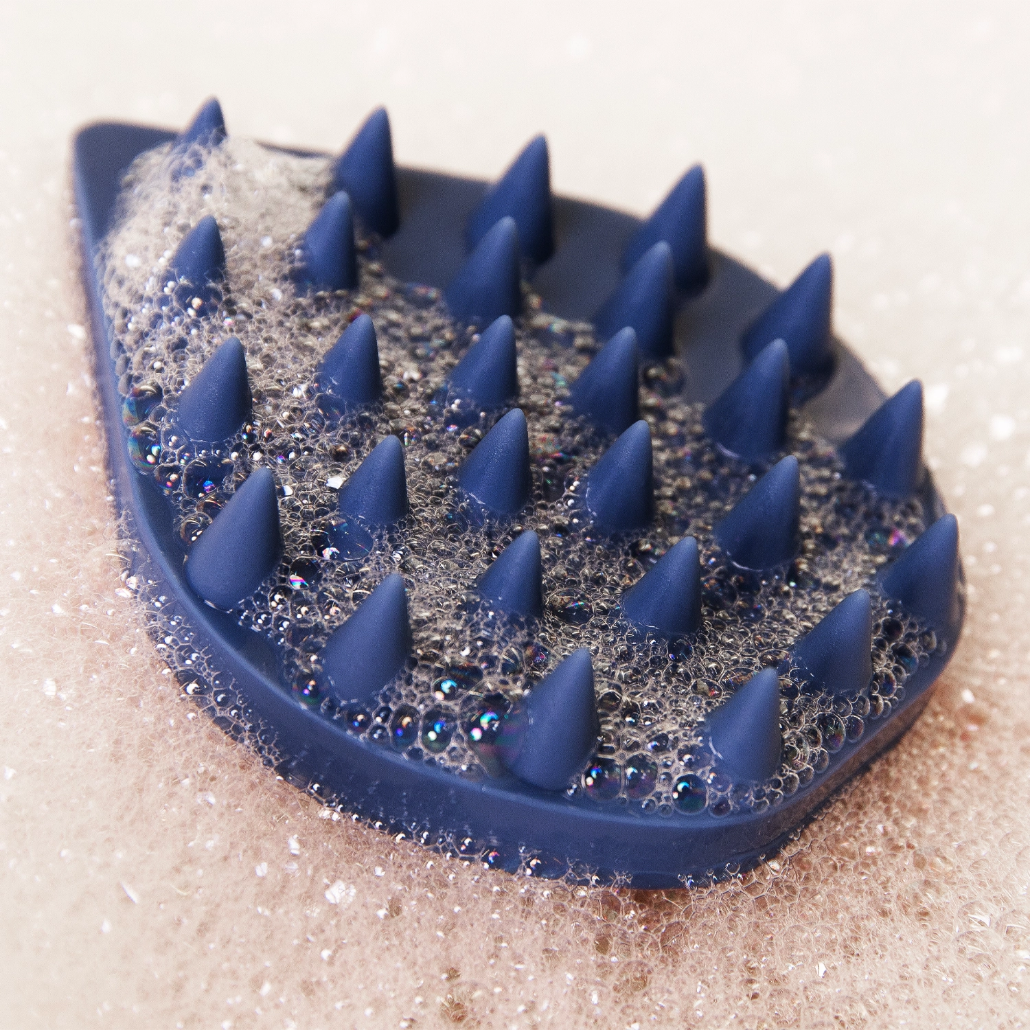Cosibella Accessories - Silikona Masieris Normālai Galvas Ādai - silikona suka galvas ādas masāžai, izgatavota no 100% izturīga silikona bez plastmasas piejaukuma. Šis materiāls nodrošina intensīvu, taču patīkamu un efektīvu lietošanu. Tas ir arī viegli kopjams un izturīgs pret ūdeni un kosmētikas līdzekļiem. Produkta asaras formas dizains un tumši zilais tonis apvieno funkcionalitāti ar estētiku. Cietie masējošie izciļņi ar noapaļotiem galiem nodrošina intensīvu mikrocirkulācijas stimulāciju un ir īpaši piemēroti normālai un taukainākai galvas ādai. Mēs iesakām vairākus lietošanas veidus: kā intensīvi masējošu galvas ādas masāžas ierīci, kā ierīci seruma vai losjona aktīvo sastāvdaļu labākai iesūkšanās veicināšanai, kā arī ikdienas lietošanai matu mazgāšanas laikā kopā ar šampūnu, lai izvairītos no ādas berzes ar nagiem un papildus attīrītu galvas ādu. Produkts ir iepakots estētiskā kartona kastītē.