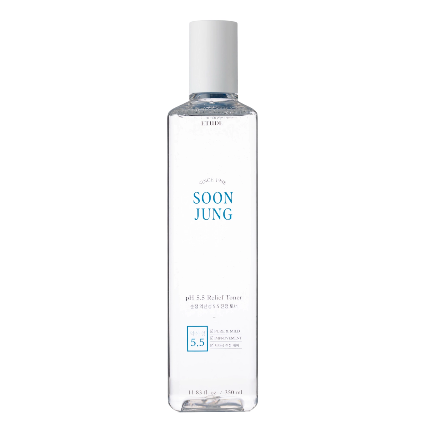 Etude House - SoonJung PH 5.5 Relief Toner - nomierinošs toniks sausai un jutīgai ādai. Satur betaīnu ar spēcīgu mitrinošu un nomierinošu iedarbību, kā arī madekasosīdu, kas atjauno ādu un mazina iekaisumu.