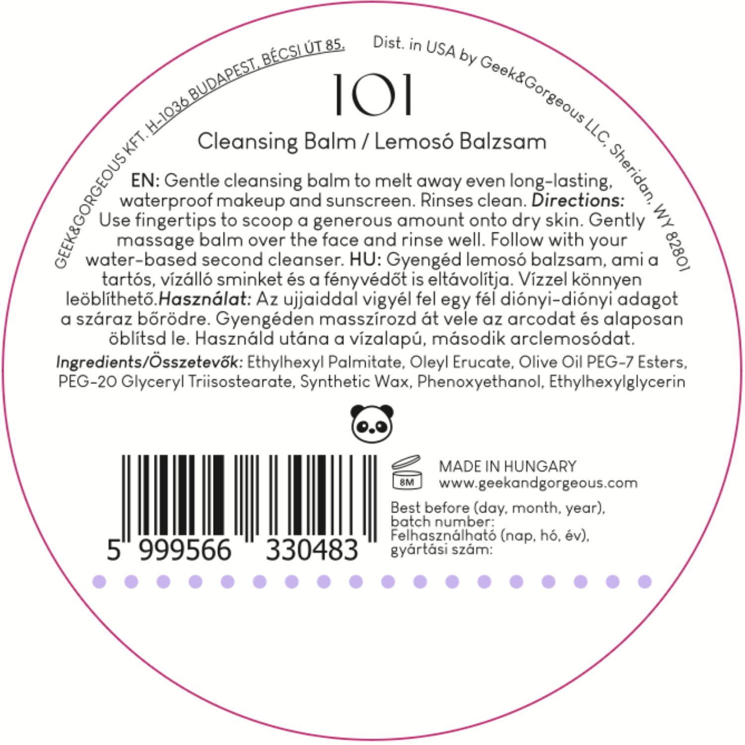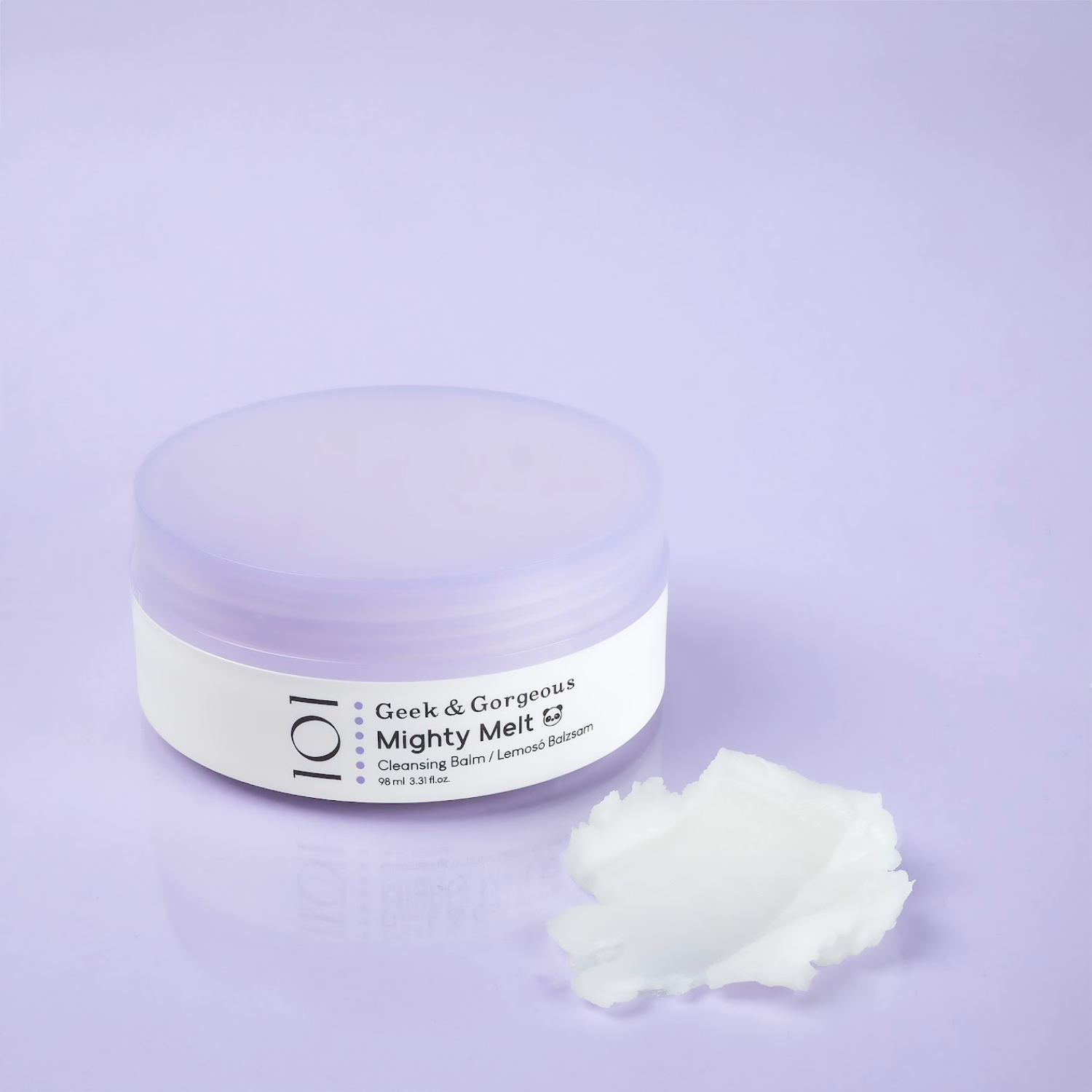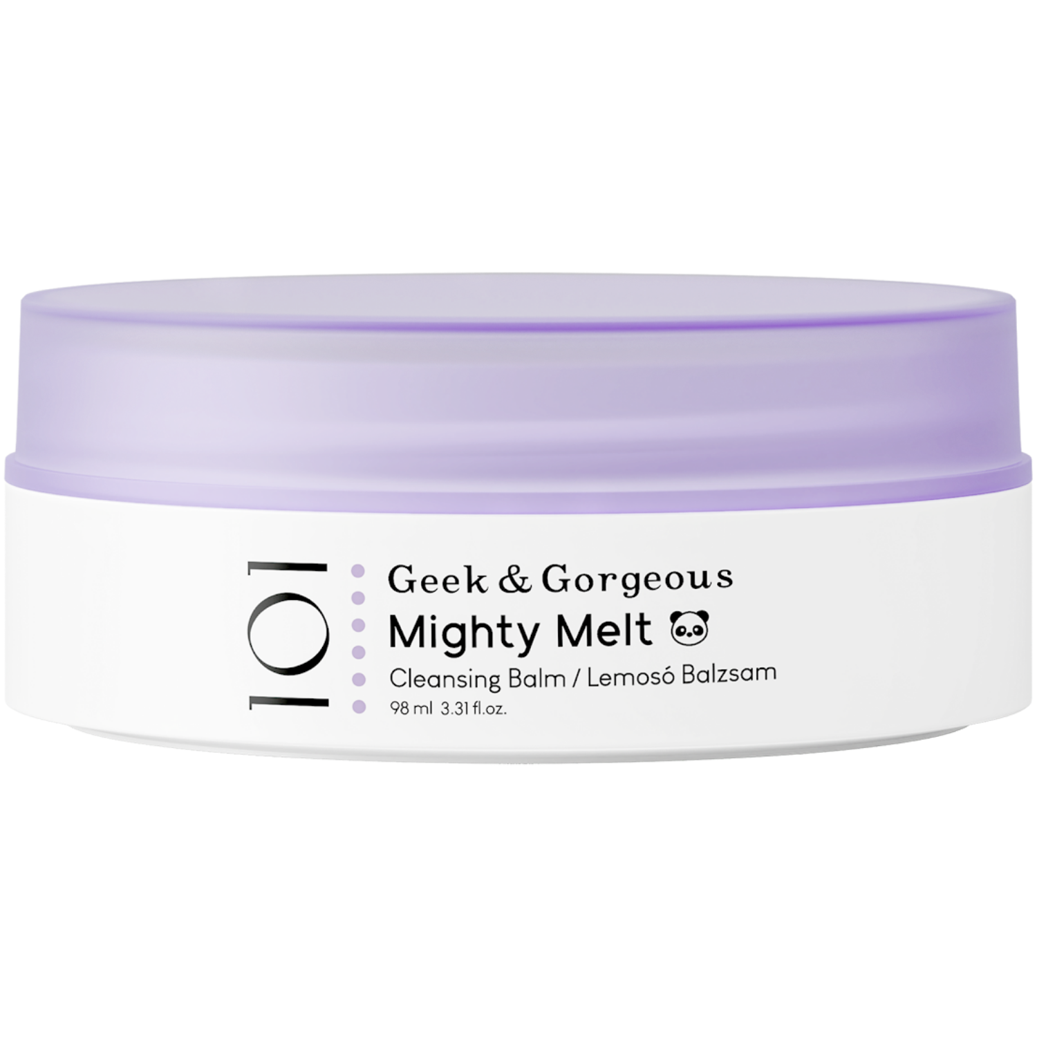 Geek& Gorgeous - Mighty Melt - attīrošs balzams, kas izšķīdina kosmētiku, noņem netīrumus un saules aizsarglīdzekļu paliekas. Tas viegli noņem arī ūdensnoturīgu grimu. Losjona formula, pakļaujot karstumam, pārvēršas zīdainā eļļā. Tas emulģējas, saskaroties ar ūdeni, tāpēc viegli nomazgājas no ādas pienainas emulsijas veidā. Sastāvā ir sastāvdaļas, kas dziļi attīra un mīkstina ādu, tostarp: Etilheksilpalmitāts, PEG-20 gliceriltriizostearāts un oleilerucināts. Kosmētika ir vegāniska un droša grūtniecēm.