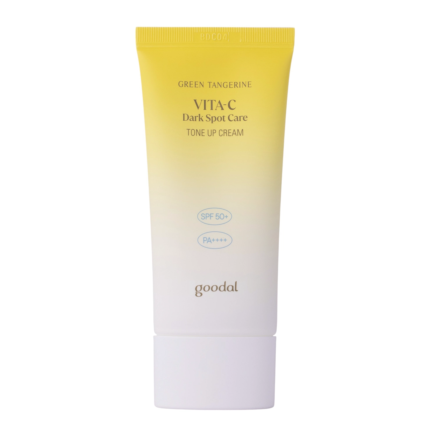 Goodal - Green Tangerine Vita C Dark Spot Tone Up SPF50+ PA++++ - saules aizsargkrēms sejas krēms, kas koriģē ādas nepilnības, izlīdzina ādas toni un, pateicoties tonizējošām īpašībām, darbojas kā grima bāze. Formula satur jauktus filtrus, kas nodrošina augstu aizsardzību pret UVA un UVB stariem. Mandarīna ekstraktam un C vitamīnam ir antioksidanta iedarbība, un tas atjauno ādas mirdzumu. Niacinamīds izlīdzina ādas toni, bet adenozīns aizkavē novecošanās procesus.
