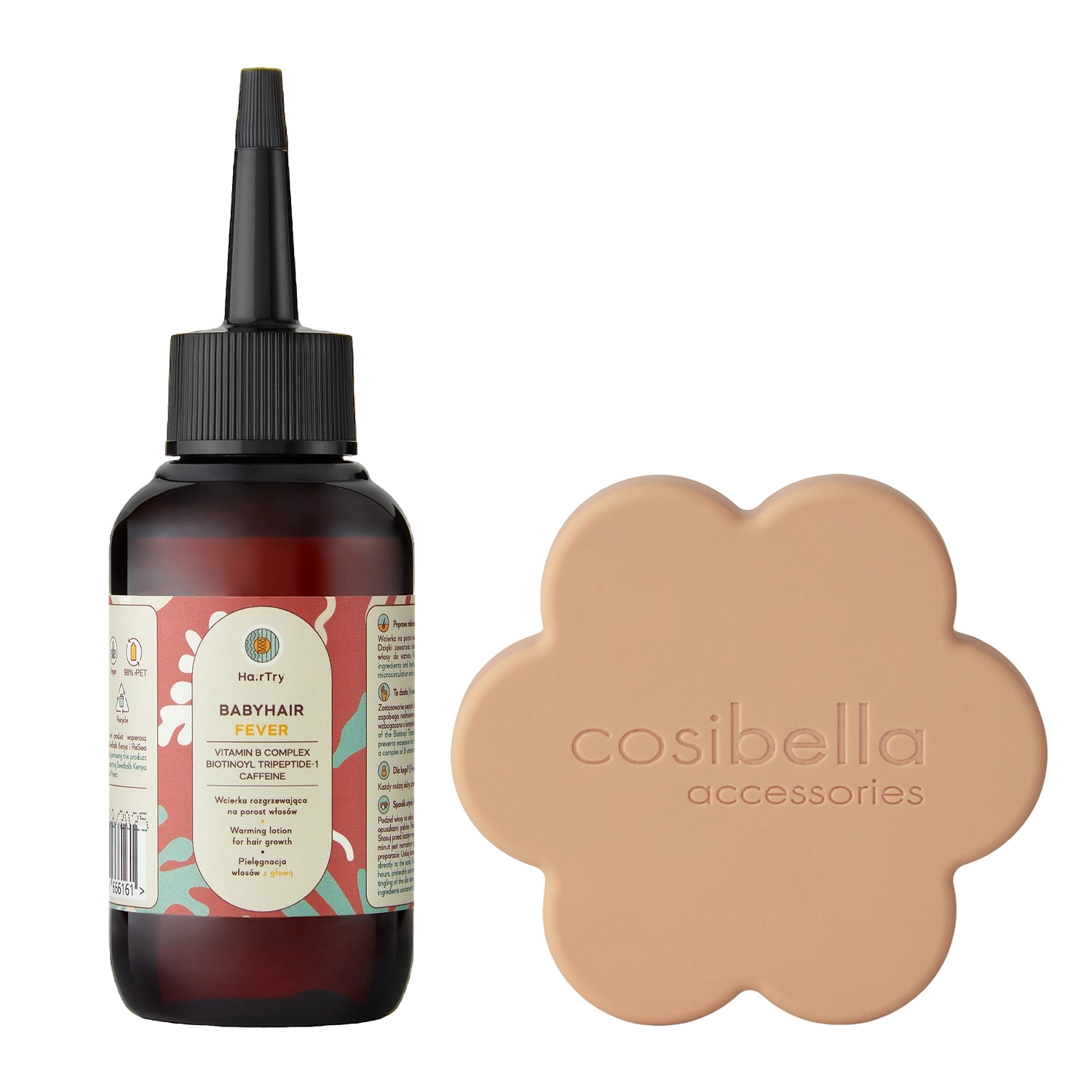 - Babyhair Fever - sildošs losjons galvas ādai, kas stimulē augšanu un samazina pārmērīgu matu izkrišanu. B vitamīnu komplekss stiprina kapilārus, epitēliju un matu folikulus, veicina šūnu atjaunošanos, regulē ādas vielmaiņu un palīdz novērst matu izkrišanu. Biotīna tripeptīds un matrikīns stiprina matus, efektīvi samazina to izkrišanu, veicina to augšanu un stimulē kolagēna sintēzi – audu “būvmateriālu”, kas atbalsta ādas un matu veselību. Savukārt kofeīna un Vanillyl Butyl Ether kombinācija rada maigu sildošu efektu matu sakņu zonā, tādējādi aktivizējot augšanas procesus. Ērts, praktisks dozators ļauj precīzi uzklāt līdzekli, bet vieglā, ūdeņainā formula viegli sasniedz matu folikulus. Maigi saldais aromāts ir patīkams un neuzbāzīgs. Tilpums: 100 ml.