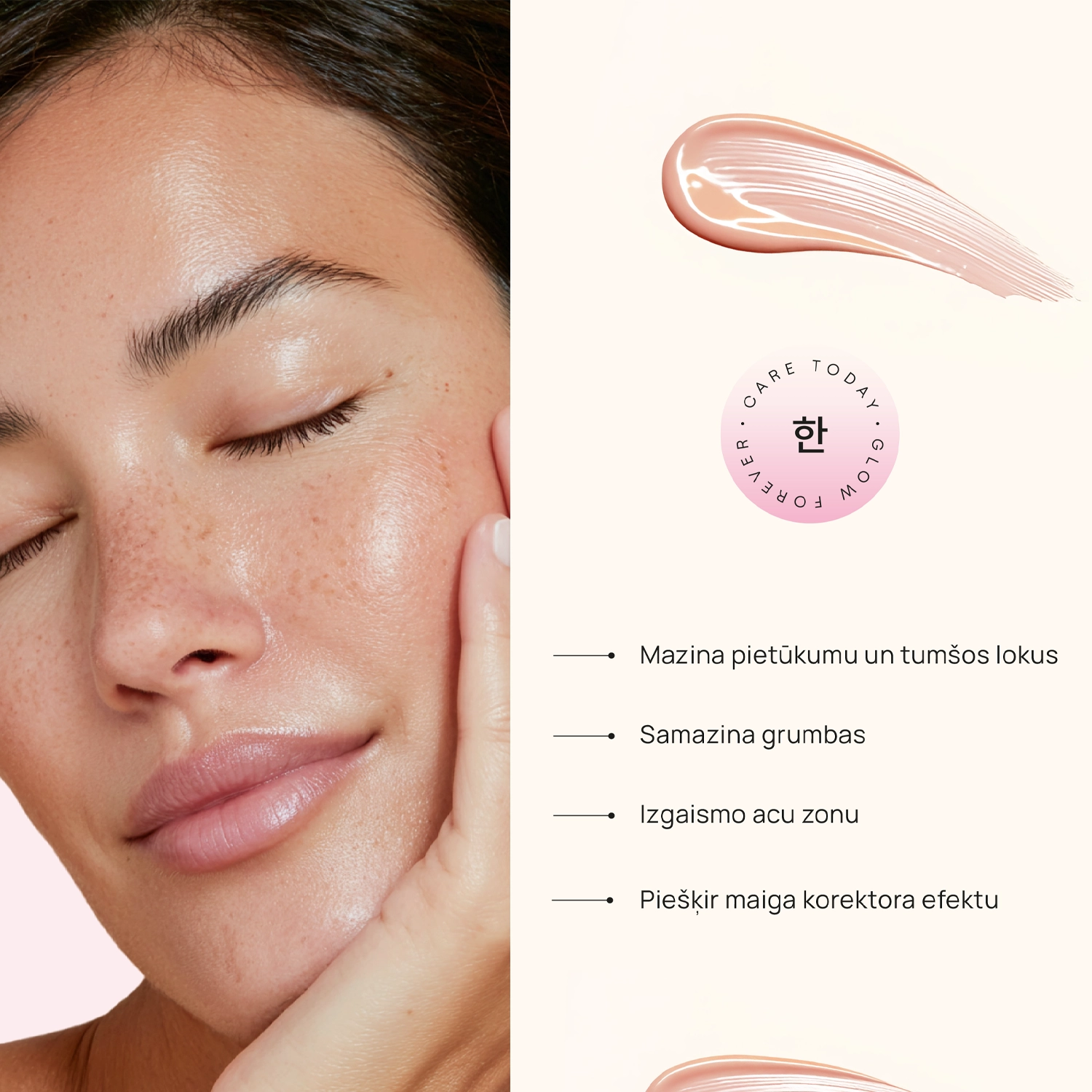 - izlīdzina ādas toni zem acīm un maigi maskē tumšos lokus,