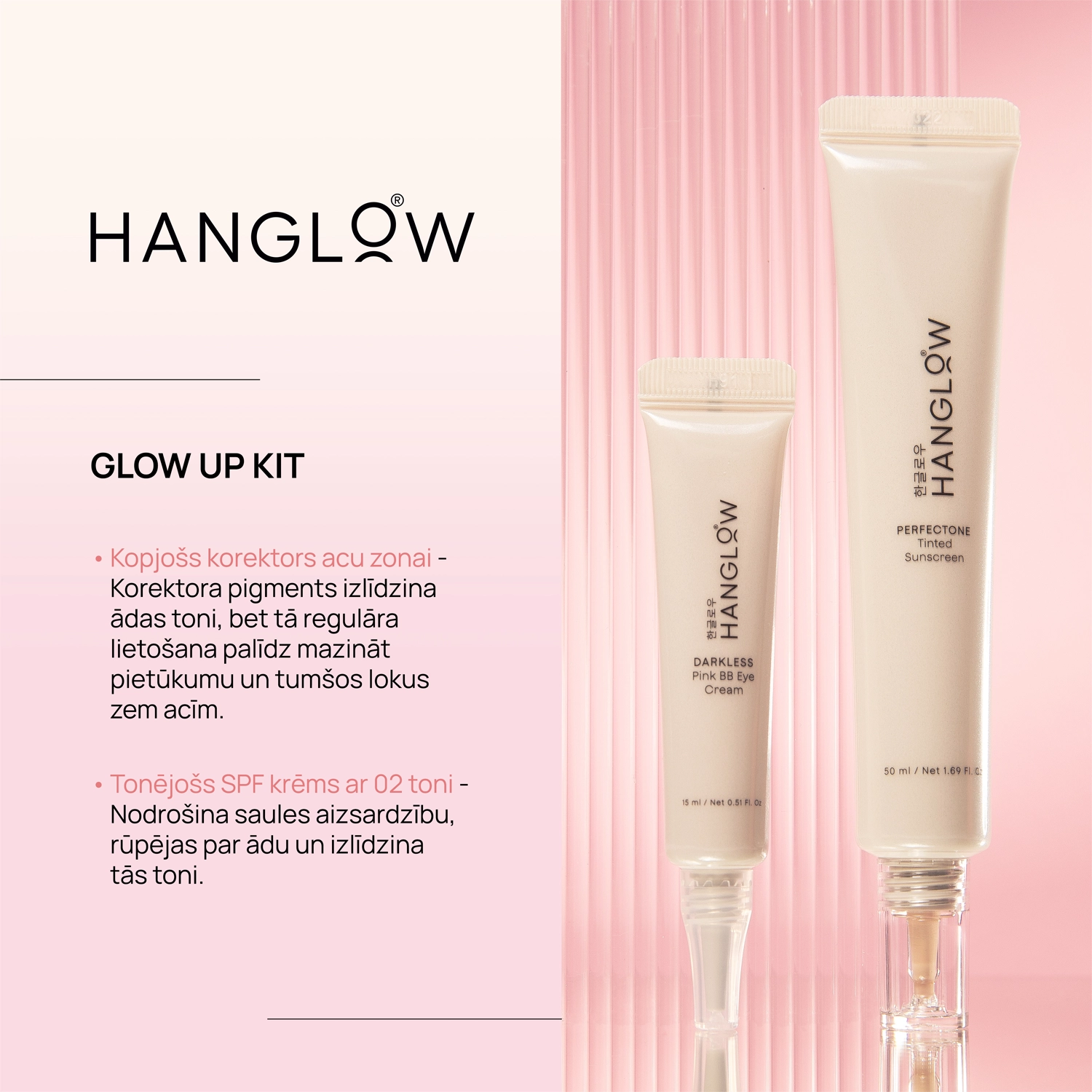 - HanGlow sejas un acu zonas kopšanas produktu komplekts