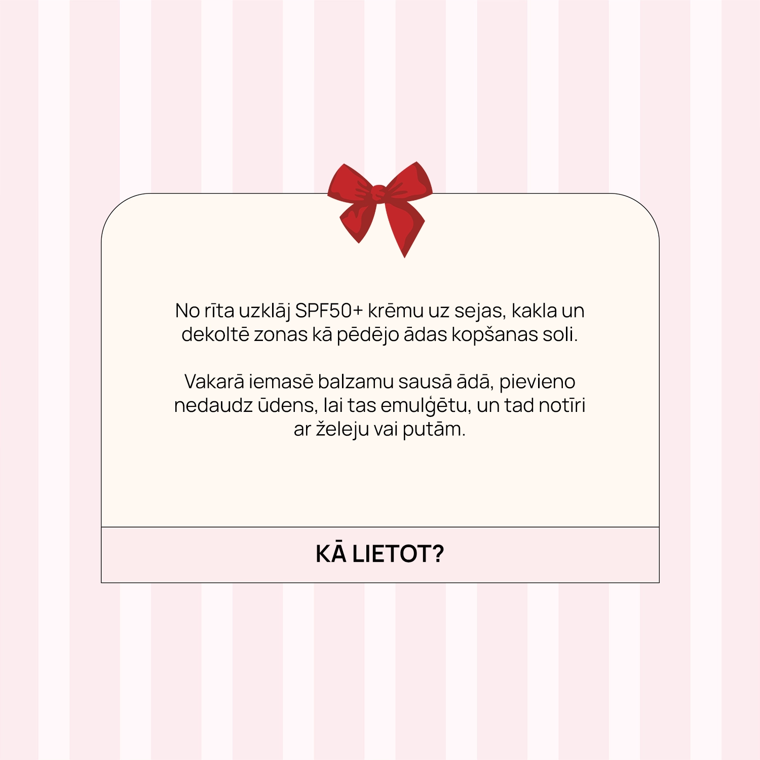 Pirms pirmās lietošanas iesakām veikt alerģijas testu. Vairāk informācijas meklē mūsu ierakstā par sensibilizācijas testu.