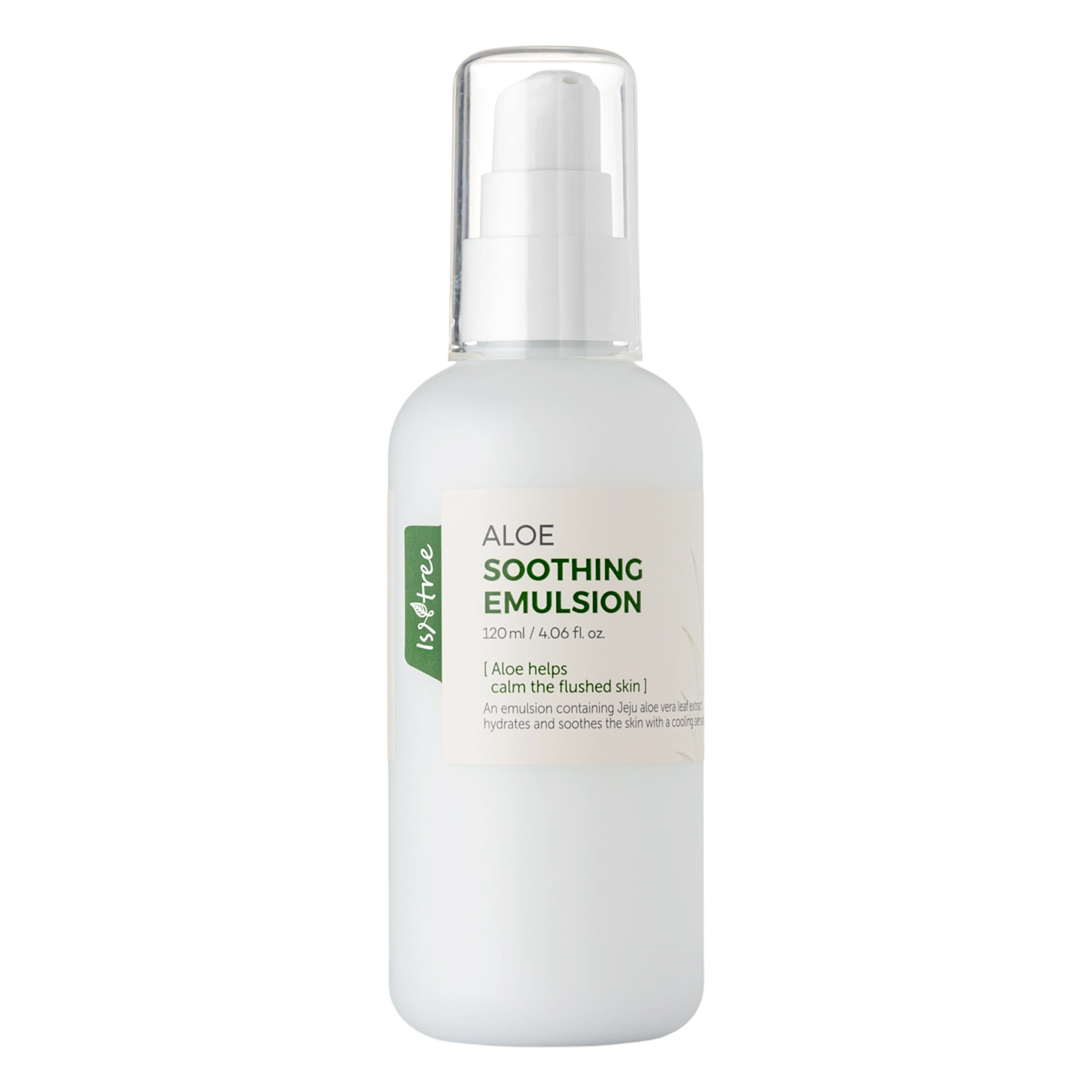 Isntree - Aloe Soothing Emulsion - emulsija ar alvejas lapu ekstraktu, kas nomierina sakairinātu ādu, mitrinošu nātrija hialuronātu un trehalozi, kā arī pretiekaisuma zaļās tējas ekstraktu. Līdzeklis efektīvi nomierina ādu, padarot to mīkstu, un, pateicoties Āzijas centellas ekstraktam, palīdz atjaunot epidermu. Produkts ar vieglu tekstūru ātri iesūcas, dziļi mitrinot ādu un ir ļoti ekonomisks lietošanā.