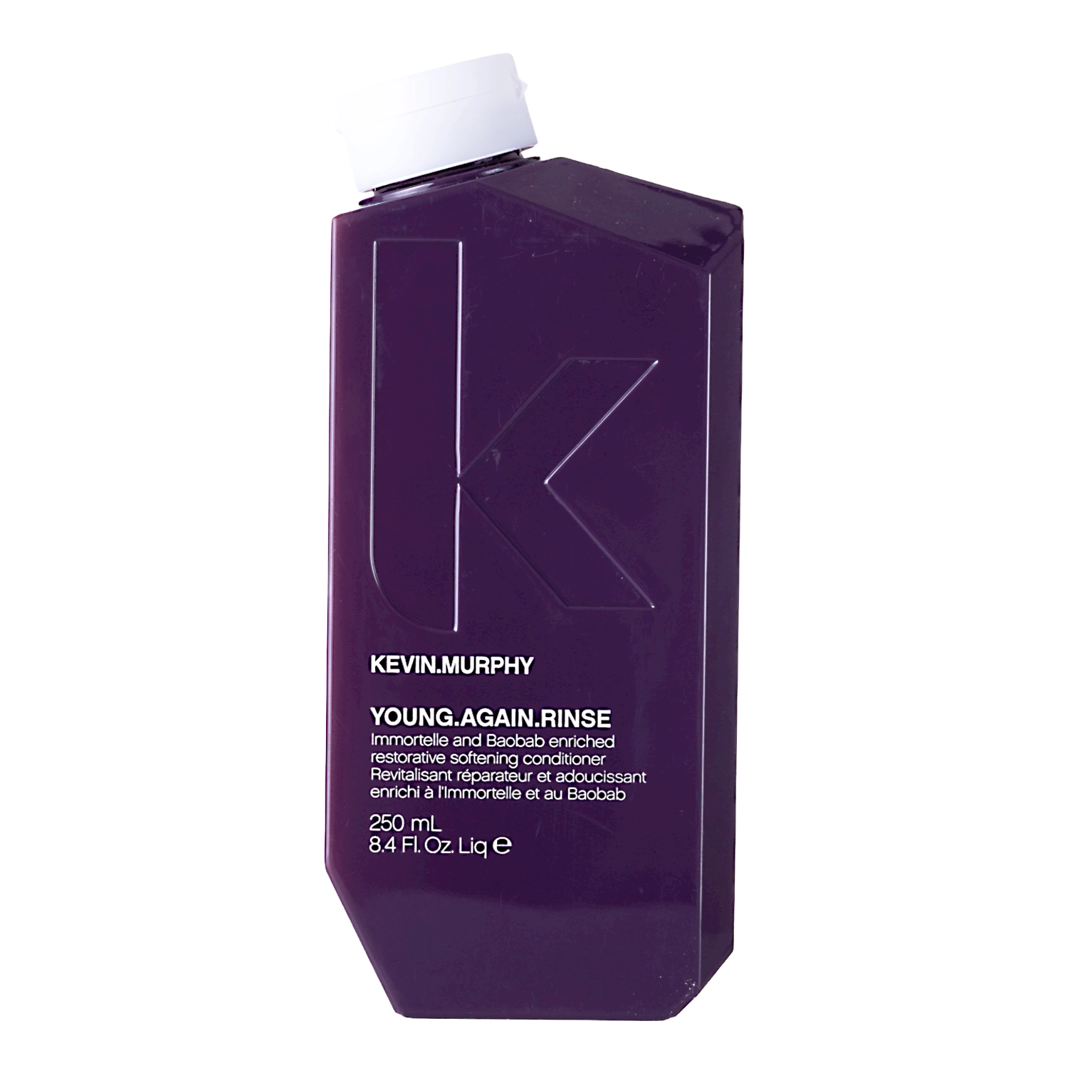 Kevin Murphy - Young Again Rinse – kondicionieris, kas atjauno spīdumu sausiem, bojātiem un novājinātiem matiem. Formulā esošais biotīns palīdz padarīt matus vizuāli biezākus, elastīgākus un spīdīgākus, kā arī atbalsta to augšanu. Alvejas sula kopā ar pantenolu mitrina matus un nomierina galvas ādu. Pantenols arī palīdz samazināt matu galu šķelšanos un stiprina matus. Piridoksīna hidrohlorīds mazina matu elektrizēšanos un padara tos gludākus. Savukārt baobaba eļļa veido uz matu virsmas aizsargājošu, izlīdzinošu kārtu, kas palīdz saglabāt mitrumu un atjaunot matu stāvokli.