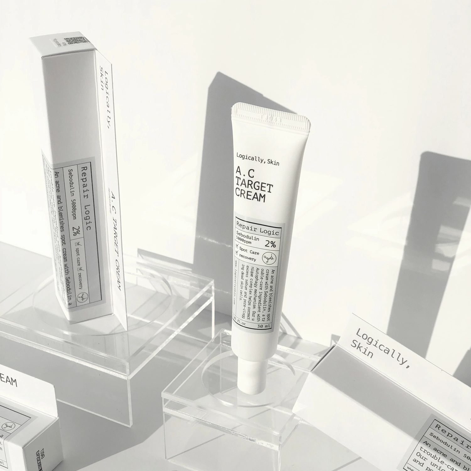 Logically, Skin - A.C Target Cream - krēms ādas nepilnībām. Kosmētikas sastāvā esošais Sebodulin™ peptīds ierobežos tauku dziedzeru izdalītā sebuma daudzumu, mazinās iekaisumus, kā arī pūtītes rētas un krāsas izmaiņas, kā arī palīdzēs atjaunot ādas hidrolipīdu slāni. Pantenola saturs produktā nomierinās jebkādus kairinājumus, savukārt saulespuķu sēklu eļļa, pateicoties daudzu vērtīgu uzturvielu saturam, atbalstīs epidermas atjaunošanos un izveidos uz tās virsmas plēvīti, kas pasargās to no pārmērīga ūdens zuduma. Produkts ir piemērots vegāniem.
