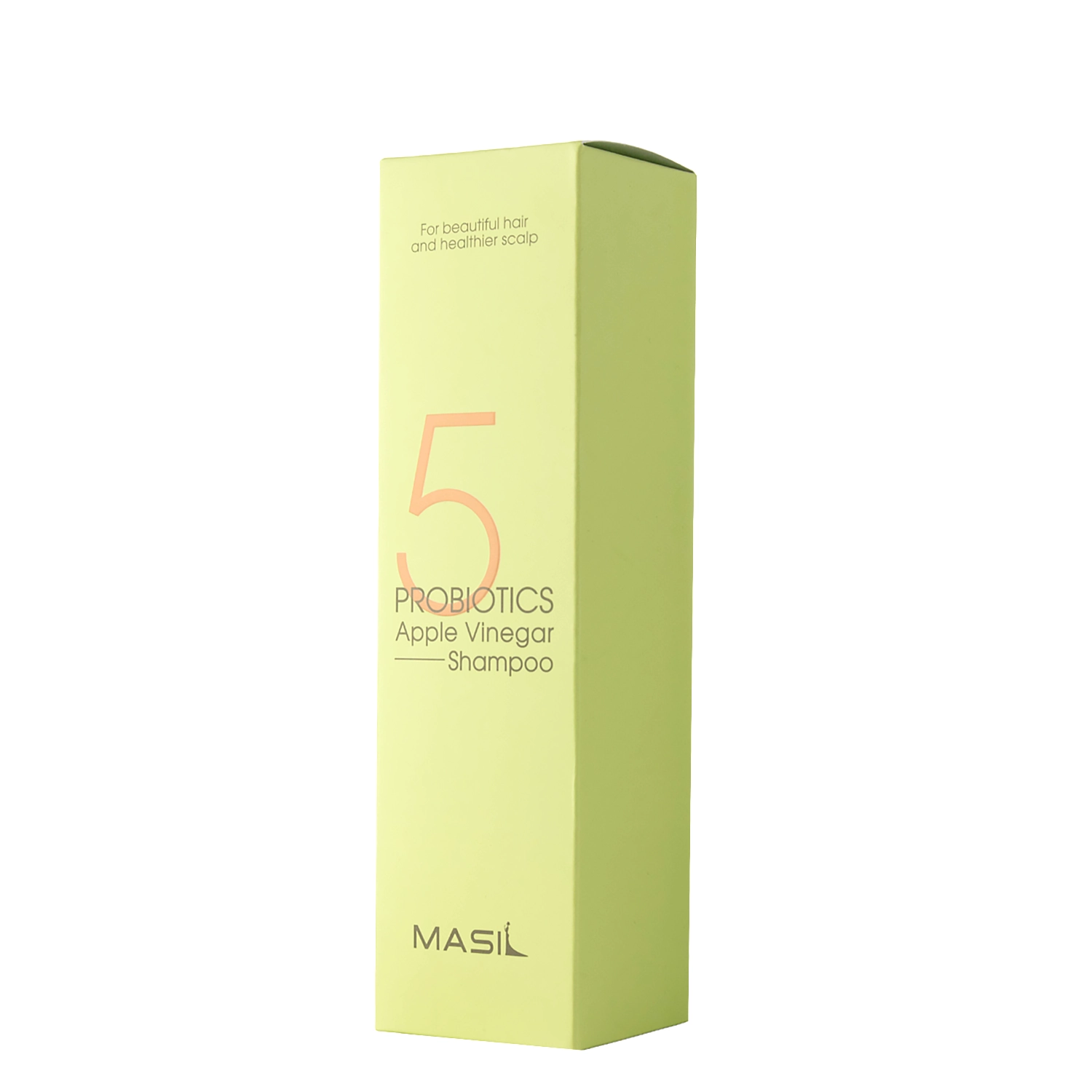 Masil - 5 Probiotics Apple Vinegar Shampoo - attīrošs šampūns ar probiotikām un ābolu etiķi, kas efektīvi noņem netīrumus un vienlaikus kopj gan matus, gan galvas ādu. Tam ir želejveida konsistence, un tas viegli izskalojas. Formulā iekļautais Lactobacillus baktēriju ferments atbalsta galvas ādas mikrobiomu, mitrina un regulē sebuma izdalīšanos, savukārt etiķa piedeva piešķir matiem spīdumu un tos nogludina. Lotosa saknes un Japānas pētersīļa ekstrakti darbojas kā antioksidanti – tie baro galvas ādu un pasargā to no brīvo radikāļu kairinošas ietekmes. Šampūns mazina niezi un kairinājumu, padarot matus mīkstus un viegli ieveidojamus.