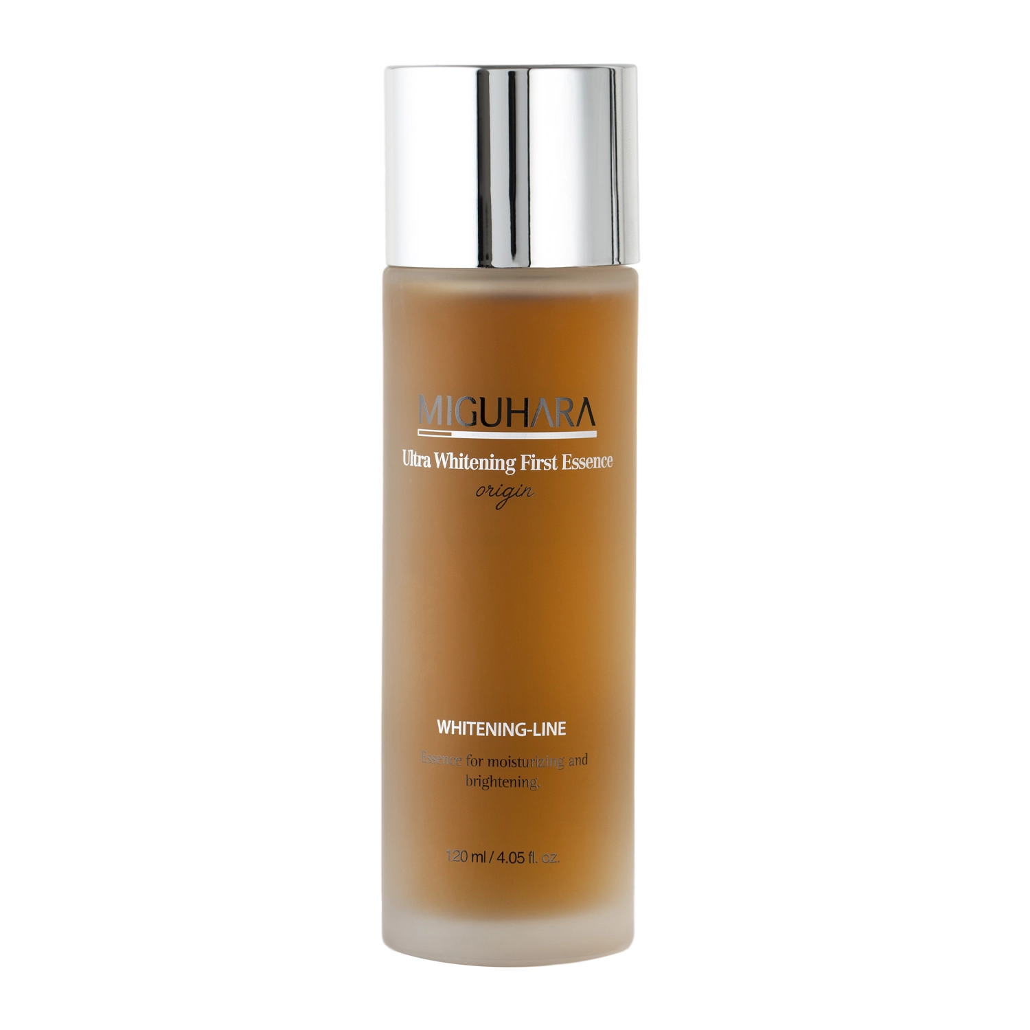 Miguhara - Ultra Whitening First Essence Origin - sejas esence. Tās sastāvā esošais niacīnamīds palīdz mazināt pigmentāciju un izlīdzināt ādas toni, savukārt Lactobacillus ferments stiprina ādas aizsargbarjeru un samazina tās jutīgumu pret ārējiem faktoriem. Apelsīna mizas ēteriskā eļļa izlīdzina ādas toni, piešķir ādai mirdzumu un starojumu. Formulu papildina provitamīns B5 un hialuronskābe, kas mitrina un izlīdzina ādas virsmu.