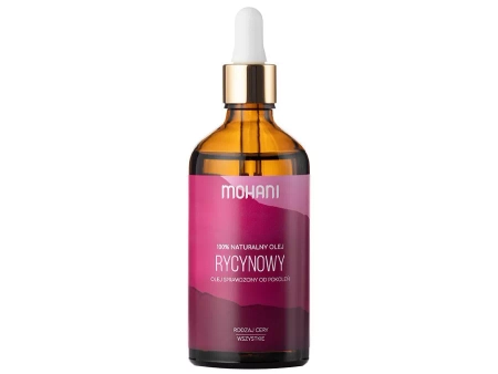 Mohani - Rīcineļļa 100ml Mohani - Rīcineļļa - bagāta ar vērtīgām taukskābēm un A un E vitamīniem. Var lietot tieši uz sausas ādas un matiem. Nostiprina skropstas un uzacis, paātrina matu augšanu un uzlabo to stāvokli. Turklāt tā atbalsta bojāto nagu plākšņu reģenerāciju. Var lietot kā daļu no eļļas attīrīšanas metodes (OCM). Tas ir dabīgs un vegānisks produkts.