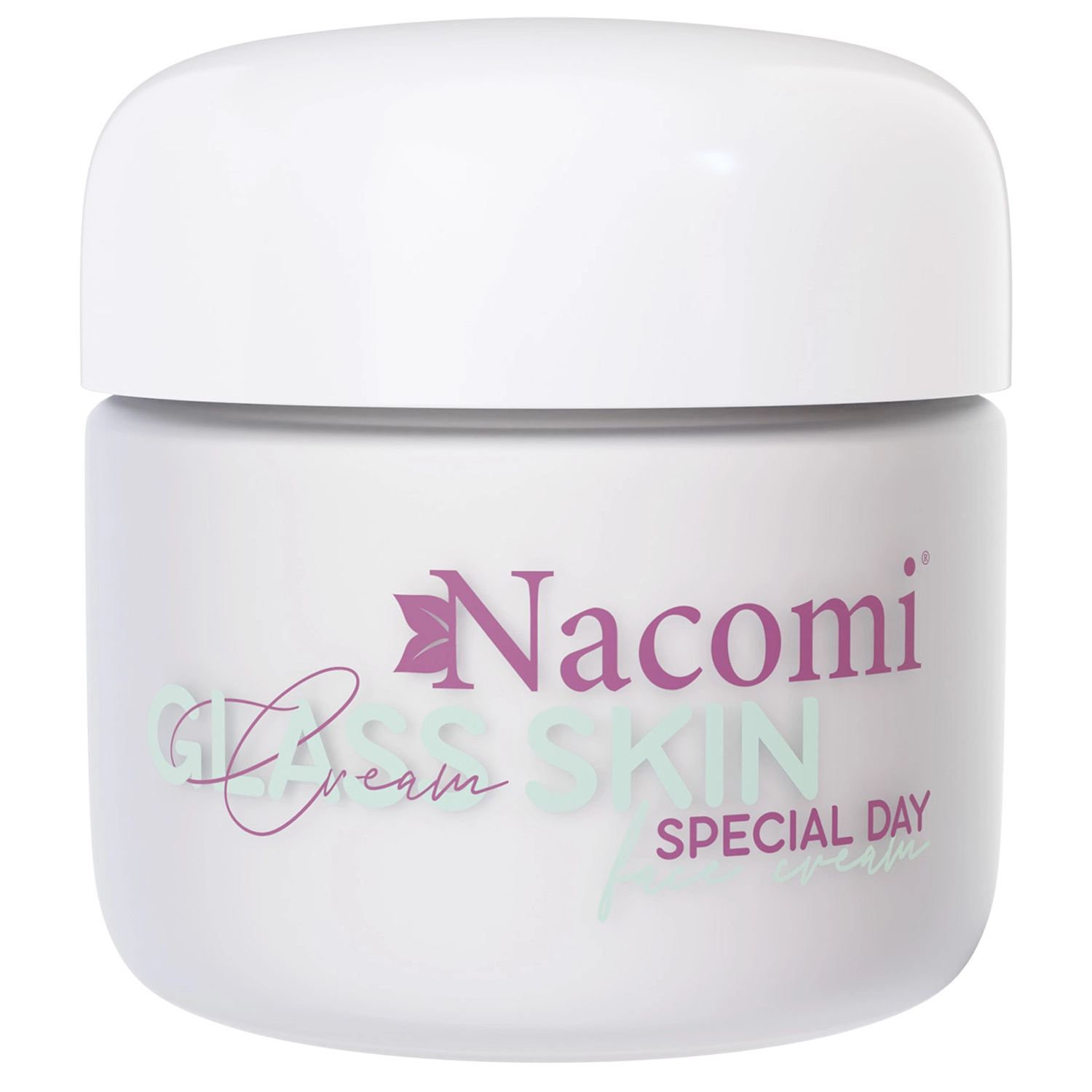 Nacomi - Sejas Krēms - Glass Skin - mitrinošs un izgaismojošs krēms, kas uzlabo blāvas, nogurušas ādas toni un piešķir veselīgu mirdzumu ar „stikla ādas” efektu. Tas satur barojošu šī sviestu un trehalozi, kas mitrina un nomierina kairinājumu. Pateicoties niacinamīdam, līdzeklis palīdz izgaismot pigmentācijas plankumus un samazināt paplašināto poru redzamību. Savukārt peptīdi uzlabo ādas tvirtumu un samazina grumbiņu redamību. Krēms izlīdzina ādas virsmu, piešķir tai svaiguma un veselīgas ādas efektu. Piemērots lietošanai gan no rīta, gan vakarā.