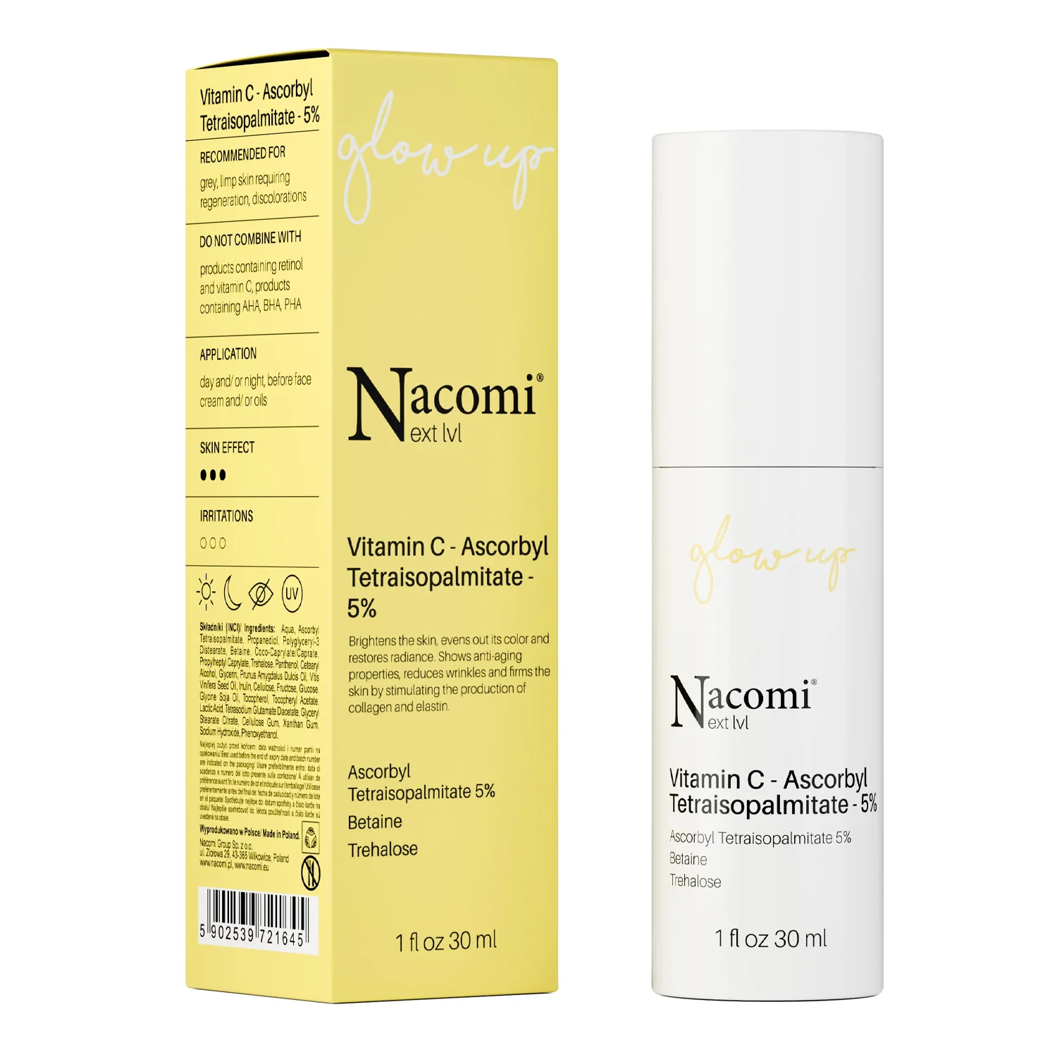 - C vitamīns (5%) - samazina sīkās grumbiņas, izlīdzina ādas toni un izgaismo pigmentāciju,