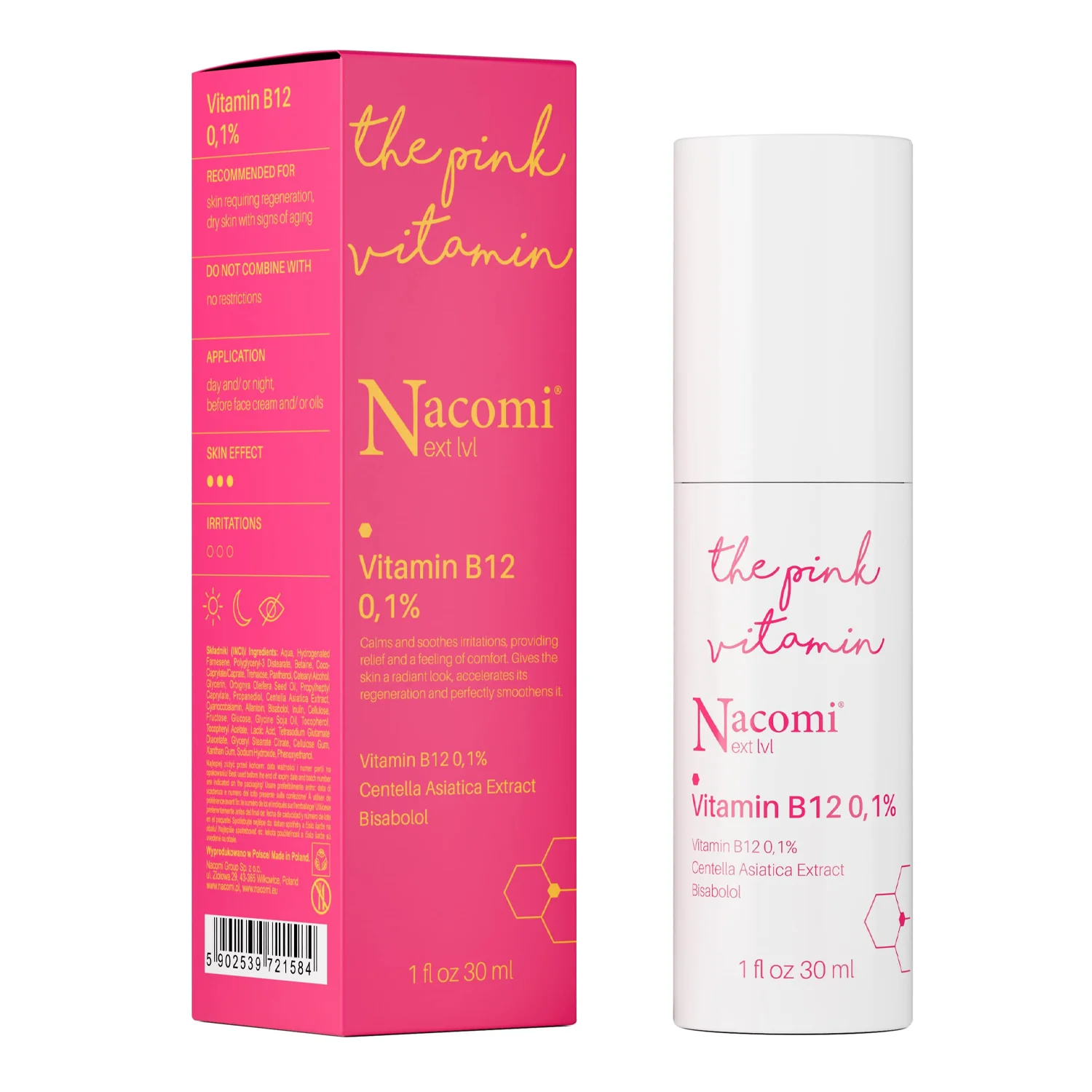 - vitamīns B12 - piemīt reģenerējoša un antioksidējoša iedarbība, nomierina apsārtumu un kairinājumu, mitrina un baro,