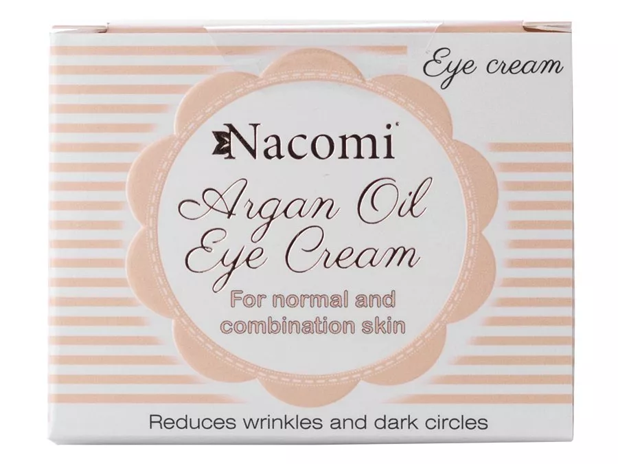 Nacomi - Dabīgais Acu Krēms ar Arganu - satur argana eļļu ar aizsargājošām, antioksidējošām un pretnovecošanās īpašībām, kā arī šī sviestu un kokosriekstu eļļu, kas baro un pasargā epidermu no sausuma. Vīnogu kauliņu eļļa palīdz stiprināt ādas hidrolipīdu barjeru. Papildus pantenols intensīvi mitrina un mazina kairinājumu, bet E vitamīns cīnās pret brīvajiem radikāļiem un palēnina novecošanās procesus. Krēms uzlabo ādas elastību zem acīm, padarot to maigāku, gludāku un labāk mitrinātu. Visa formula ir veidota, izmantojot dabiskas izcelsmes izejvielas.