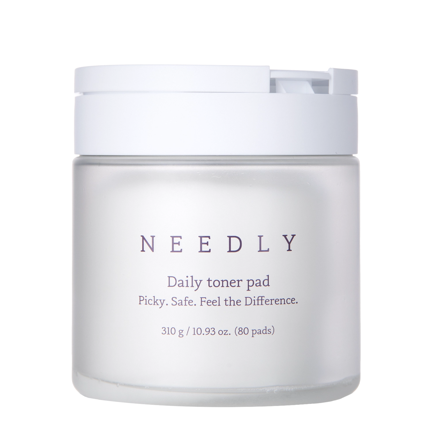 Needly - Daily Toner Pad - ar vieglu toniku piesātināti sejas spilventiņi, kas, pateicoties glikoonolaktona un salicilskābes saturam, maigi noloba un izlīdzina ādas virsmu. Šo skābju saturs ir lieliski piemērots tiem, kuru ādas tekstūra ir nevienmērīga un ir redzamas paplašinātas tauku dziedzeru atveres, tā sauktās ādas poras. Savukārt alantoīna, gotu kolas lapu ekstrakta un nātrija hialuronāta klātbūtne sastāvā padara spilventiņus nomierinošus, mitrina un mīkstina epidermu. Sastāvs ir bagātināts arī ar betaīnu, kas stimulē ādu ātrāk atjaunoties un ilgāk saglabāt mitrumu. Iepakojumā ir 60 gabali.