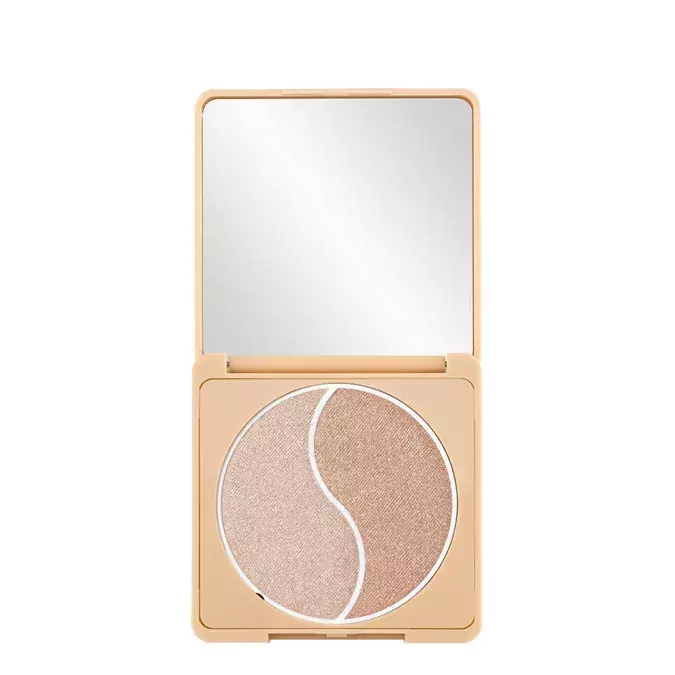 - Divtoņu izgaismotājs ar zelta un rozā pigmentiem starojošam mirdzuma efektam