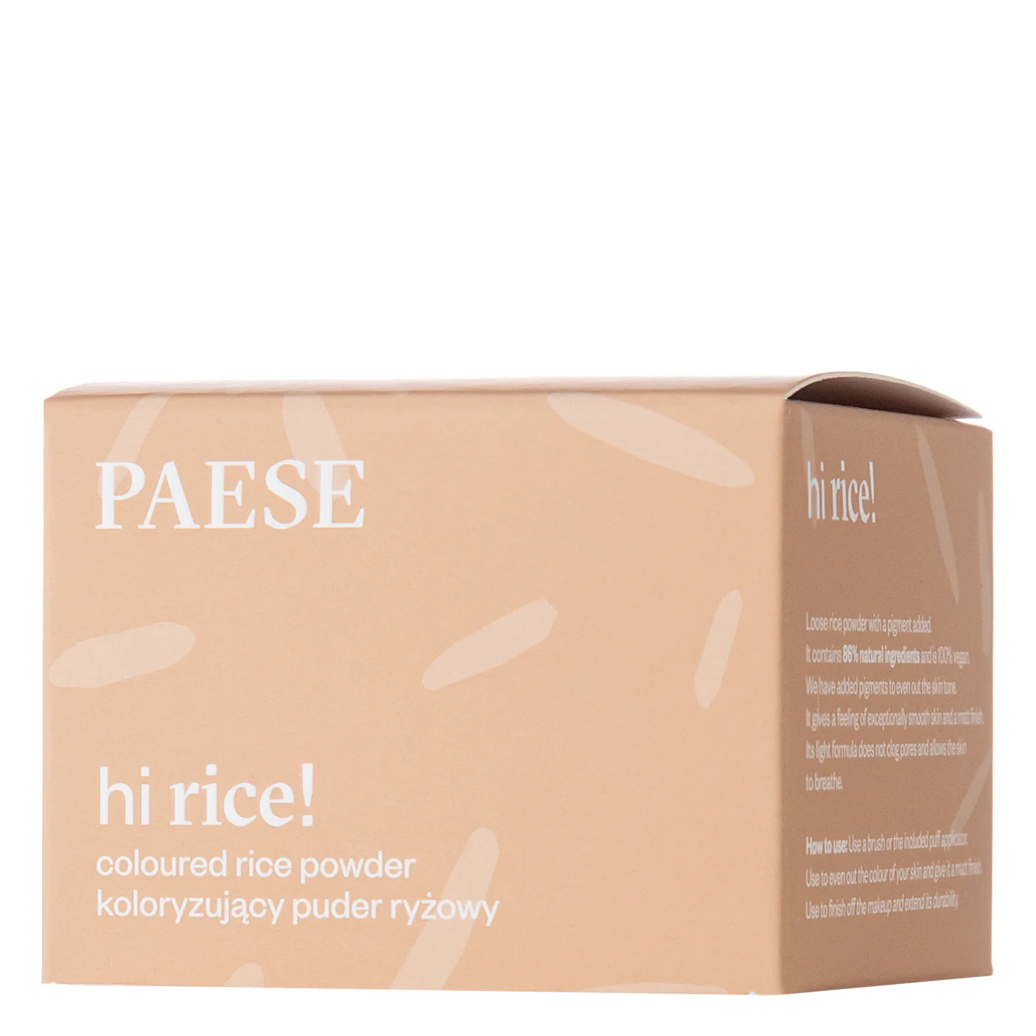 Paese - Hi Rice Powder - birstošs rīsu pulveris, kas izlīdzina ādas toni, pateicoties tā dabīgajiem pigmentiem. Pēc uzklāšanas sejas krāsa ir gluda un matēta. Produkts absorbē sebumu un efektīvi fiksē grimu.