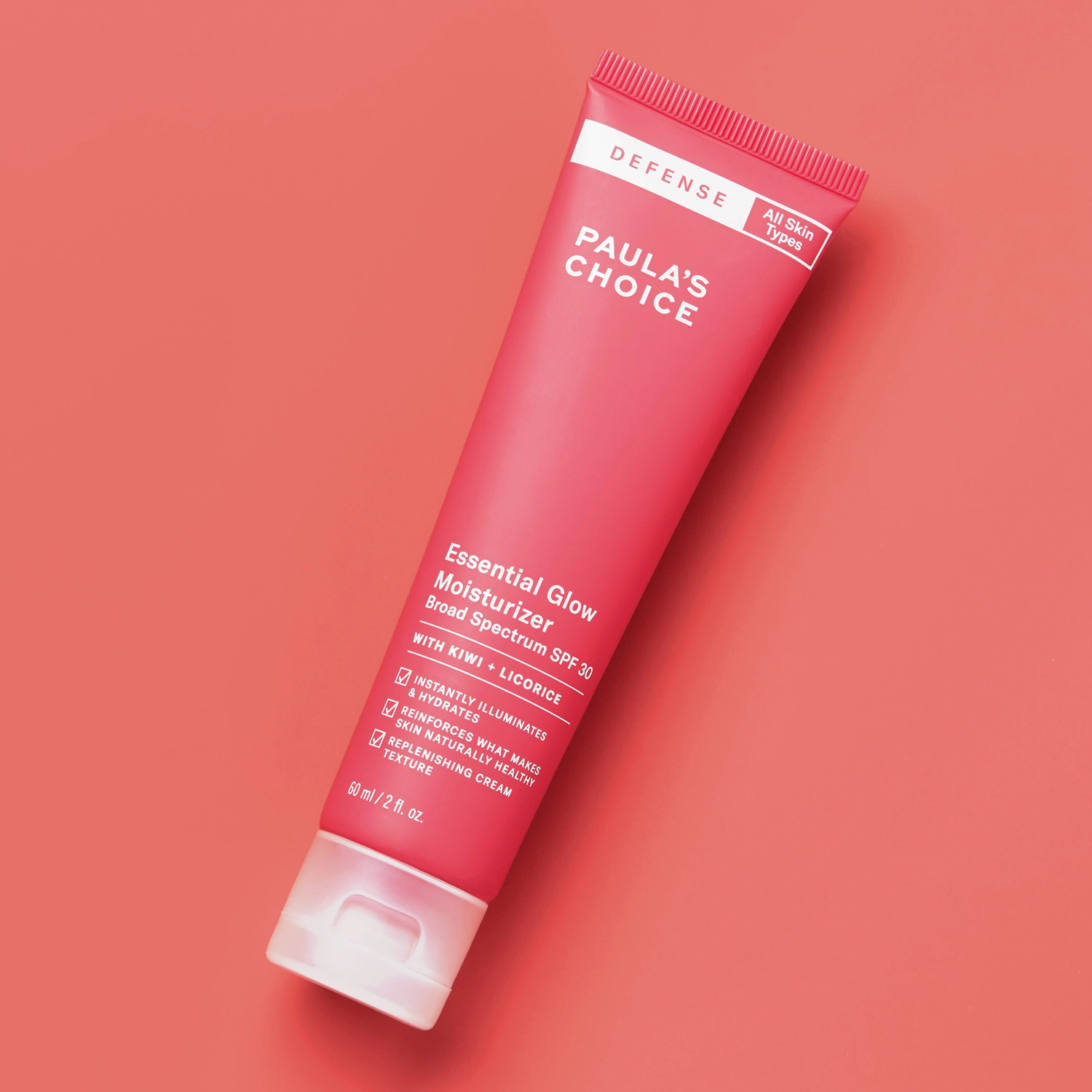 Paula's Choice - Defense - Essential Glow Moisturizer SPF30 ir izgaismojošs mitrinošs līdzeklis, kas aizsargā ādu no ultravioletā starojuma. Tā sastāvā ir tikai fizikālie (minerālie) filtri - cinka oksīds un titāna dioksīds, kas ļoti labi iedarbojas uz jutīgu, vaskulāru, atopisku ādu. Krēma formula ir bagātināta ar lakricas saknes ekstraktu un bisabololu, kas nomierinās ādu, kā arī antioksidantiem - resveratrolu, C un E vitamīnu , kivi augļu ekstraktu. Tam ir krēmīga, ļoti mitrinoša tekstūra.
