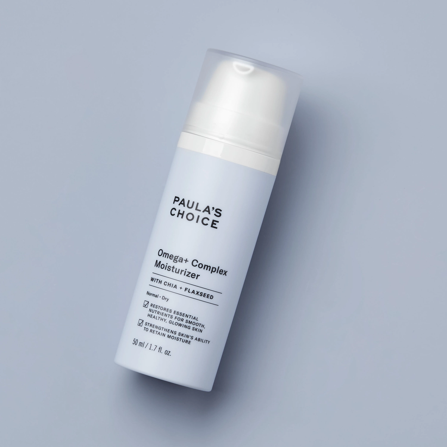 Paula's Choice - Omega+ Complex Moisturizer - barojošs krēms, kas ir paredzets sausai ādai. Sastāvā esošais šī sviests novērš ūdens zudumu no epidermas un baro ādu. Krēms ir bagāts ar eļļām, kas satur Omega-3, Omega-6 un Omega-9 taukskābes, kas padara ādu stiprāku pret kaitīgo vides faktoru iedarbību, kā arī padara ādu elastīgāku un maigāku. Keramīdi un holesterīns nostiprina epidermas barjeru, savukārt gvajaves ekstraktam piemīt antioksidanta iedarbība. Krēma sastāvā ir arī aminoskābju komplekss, kas padarīs ādu elastīgāku, un adenozīns, kam piemīt pretgrumbu iedarbība. Savukārt hialuronskābe un pienskābe nodrošinās pareizu ādas mitrināšanas līmeni.