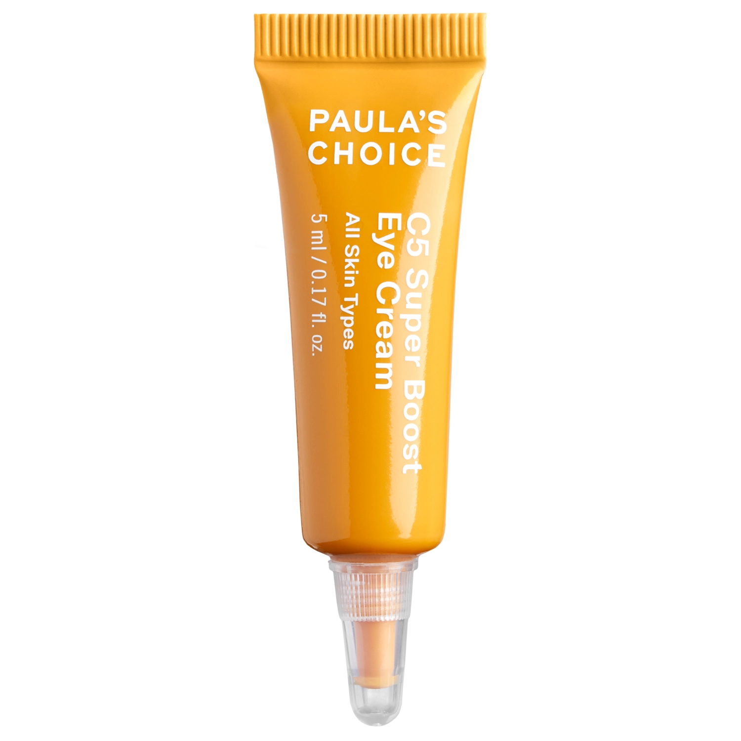 Paula's Choice - C5 Super Boost Eye Cream - viegls acu krēms, kas piemērots problemātiskai šīs zonas zonai, kurā mēdz veidoties tumši loki un pietūkums. Formulā izmantots C vitamīns trijās stabilās formās ar kopējo koncentrāciju 5 %, proti, 2 % 3-Oetil askorbīnskābes, 2 % askorbilglikozīda un 1 % askorbilpalmitāta. Peptīdu pievienošana samazina grumbu rašanos, nodrošina tvirtuma efektu un piešķir ādai elastību. Hialuronskābe mitrina ādu, bet ingvera cilmes zerumbons samazina tumšos lokus un aizsargā pret brīvajiem radikāļiem. Turklāt šī sviests pasargā ādu no sausuma, kā arī nomierina un mīkstina.