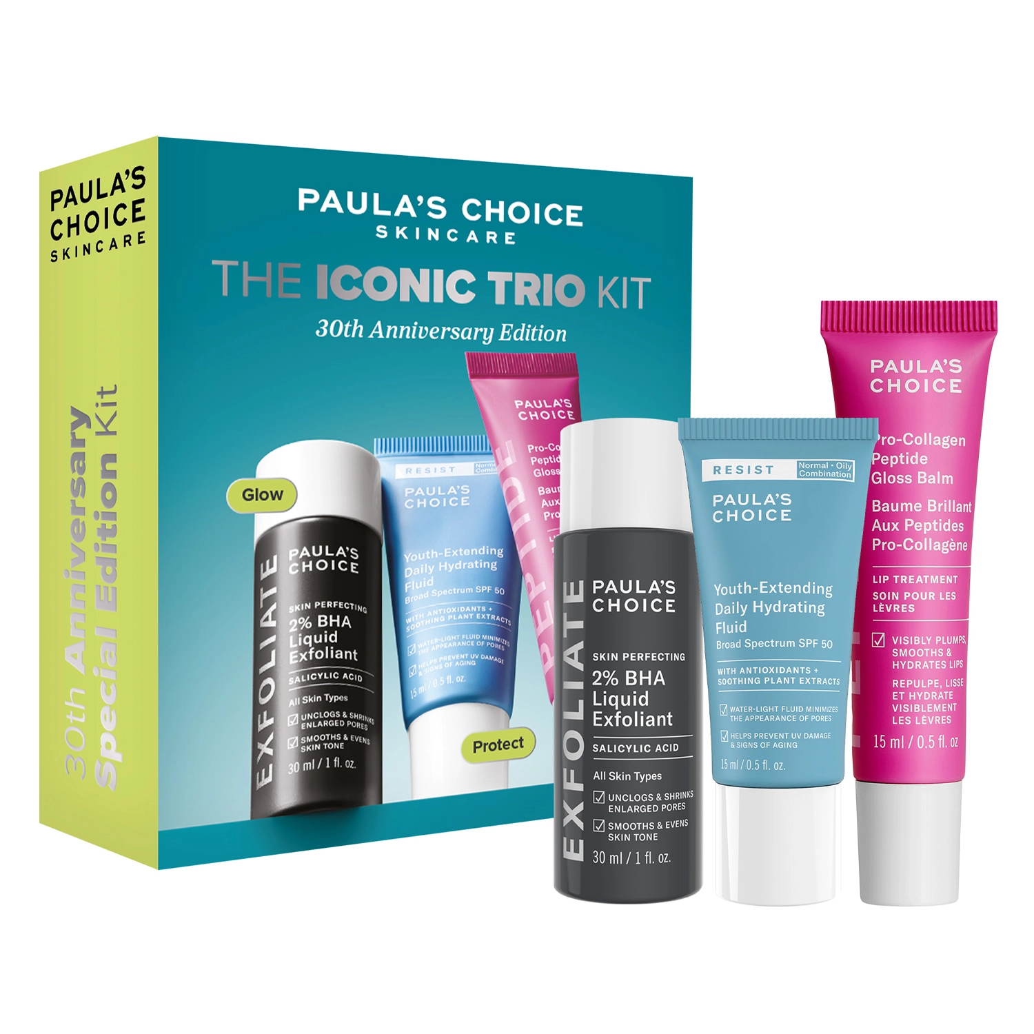 Iconic Trio Kit - kosmētikas komplekts ar visaptverošu eksfoliējošu, nostiprinošu un aizsargājošu iedarbību, izveidots par godu zīmola 30. gadadienai. Komplektā ietilpst: