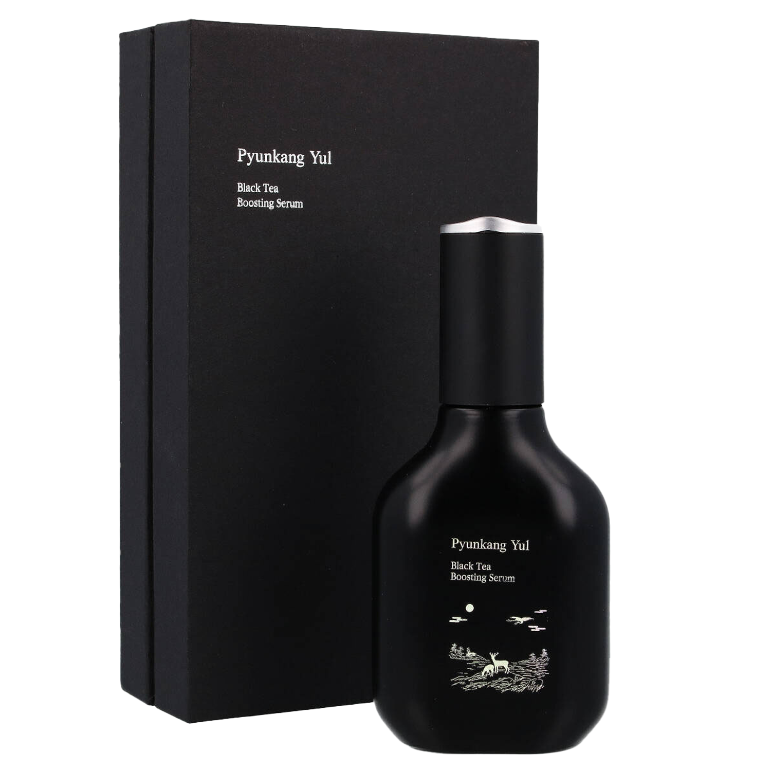 Pyunkang Yul - Black Tea Boosting Serum - daudzpusīgs serums, kas, pateicoties bagātīgajam sastāvdaļu klāstam, apmierina dažādas ādas vajadzības . Sastāvā irniacinamīds, kas stiprina ādas barjeru, tam piemīt seboregulējoša, pretiekaisuma un balinoša iedarbība. Produkta formula ir bagātināta ar Centella Asiatica ekstraktu un no šī auga iegūtām sastāvdaļām (madekasosīds, madekaskābe, asiatiskā skābe) .Centella asiatica piemīt nomierinoša, reģenerējoša un antibakteriāla iedarbība. Peptīdam argirelīna veidā piemīt pretgrumbu iedarbība un tas novērš sejas grumbu padziļināšanos, savukārt adenozīns aizkavē novecošanās procesus, padara ādu elastīgāku un izlīdzina ādas tonusu. Hialuronskābe rūpējas par optimālu ādas mitrināšanu. Turklāt keramīdi stiprina hidrolipīdu barjeru, aizsargā ādu no sausuma un baro to.