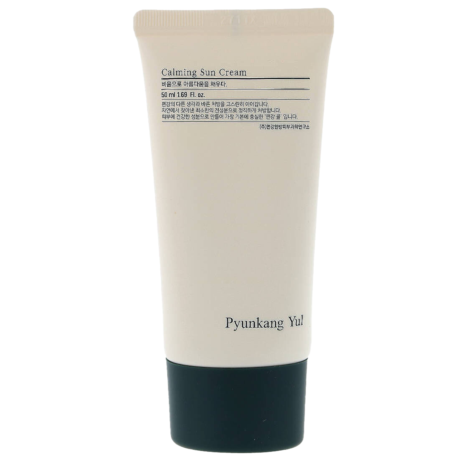 Pyunkang Yul - Nomierinošs saules krēms SPF50 + PA ++ - nomierinošs saules aizsargkrēms. Tas ir paredzēts jutīgai ādai ar noslieci uz kairinājumu. Tā sastāvā ir ķīmiskie filtri, kas aizsargā pret UV starojuma kaitīgo ietekmi. Tas ir bagātināts ar Centella Asiatica ekstraktu, kas nomierina, mazina apsārtumu un reģenerē. Līdzekļa sastāvā esošais niacīnamīds balina un regulē sebuma sekrēciju. Hialuronskābe nodrošina atbilstošu mitrināšanas līmeni, savukārt pantenols un alantoīns nomierina jutīgu ādu. Līdzeklis viegli klājas un nebaltē.