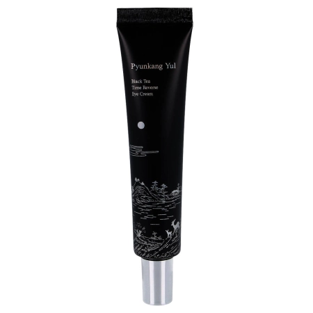 Pyunkang Yul - Black Tea Reverse Eye Cream - acu krēms ar mitrinošām un barojošām īpašībām. Produkta sastāvā atradīsiet fermentu no saldās melnās tējas. Tā sastāvā esošie vitamīni, aminoskābes, minerālsāļi un organiskās skābes labvēlīgi ietekmē dabisko epidermas atjaunošanos. Sastāvā esošais keramīdi mīkstina un baro ādu, vara tripeptīds atbalsta kolagēna un elastīna veidošanos un paātrina ādas atjaunošanos, bet makadāmijas riekstu eļļa un šī sviests padara ādu spēcīgi elastīgu.