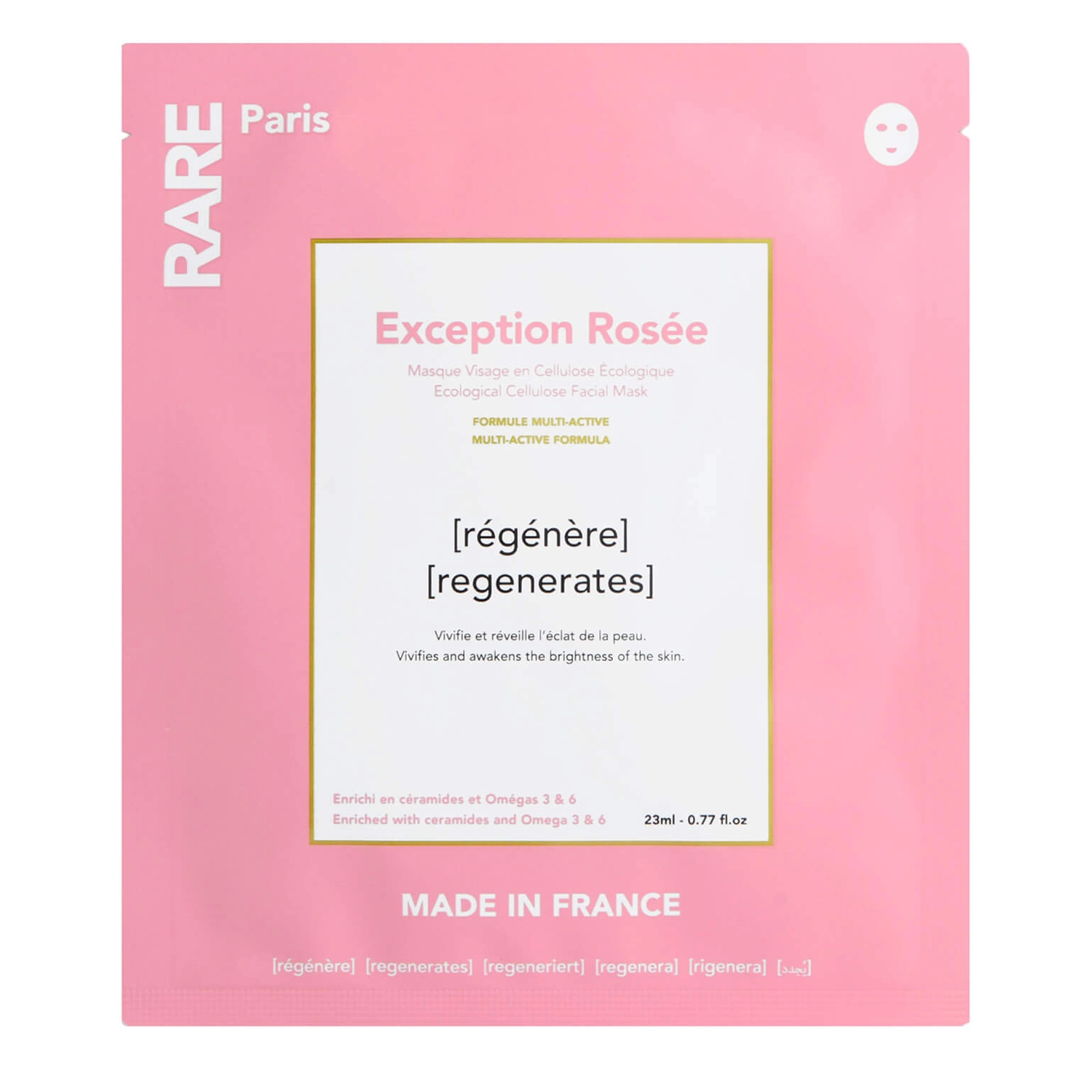 Rare Paris - Exception Rosée - atjaunojoša lokšņu maska. keramīdi Tās sastāvā ir , kasveicina ādas aizsargslāņa atjaunošanos un pašatjaunošanos, vēl vairāk pastiprinot pretnovecošanās efektu . Savukārt nātrija hialuronāts nodrošina pietiekamu mitrināšanu, mīkstina un izlīdzina epidermu, savukārt saha inchi eļļa izlīdzina ādu, uzlabojot tās tekstūru, un tai ir atjaunojoša iedarbība. Savukārt E vitamīns stiprina epidermas barjeru, kavē ādas novecošanās procesus un novērš iekaisumus.