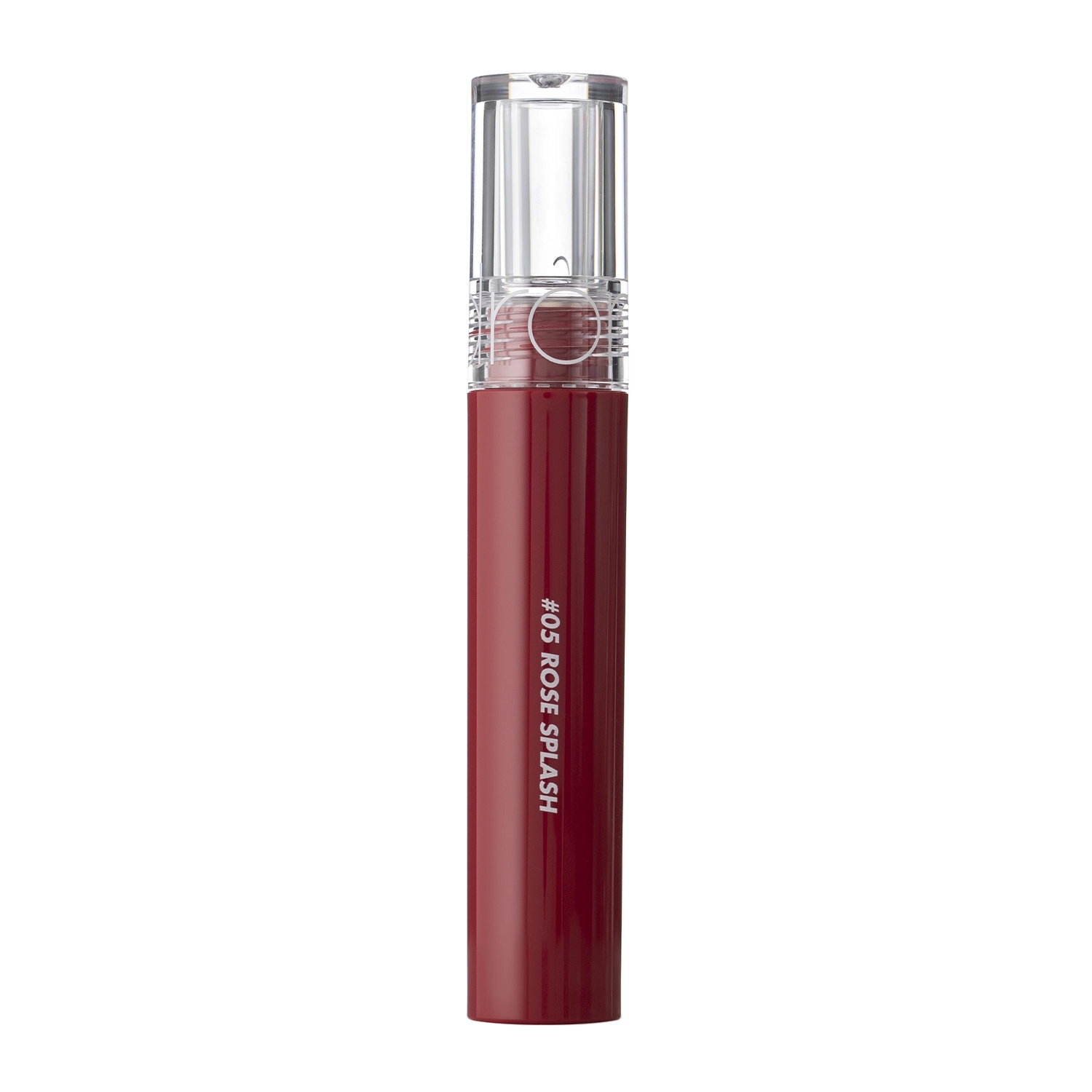 Rom&nd - Glasting Water Tint - 05 Rose Splash - lūpu tinte vēsā sarkanā tonī, kas nosedz lūpas ar bagātīgu krāsu, piešķirot tām spīdīgu, ūdeņainu efektu. Tās formula ir noturīga un neizraisa lipīguma sajūtu visas dienas garumā. Savukārt tintes sastāvs ir bagātināts ar mitrinošo skvalānu, kas intensīvi baro lūpas.