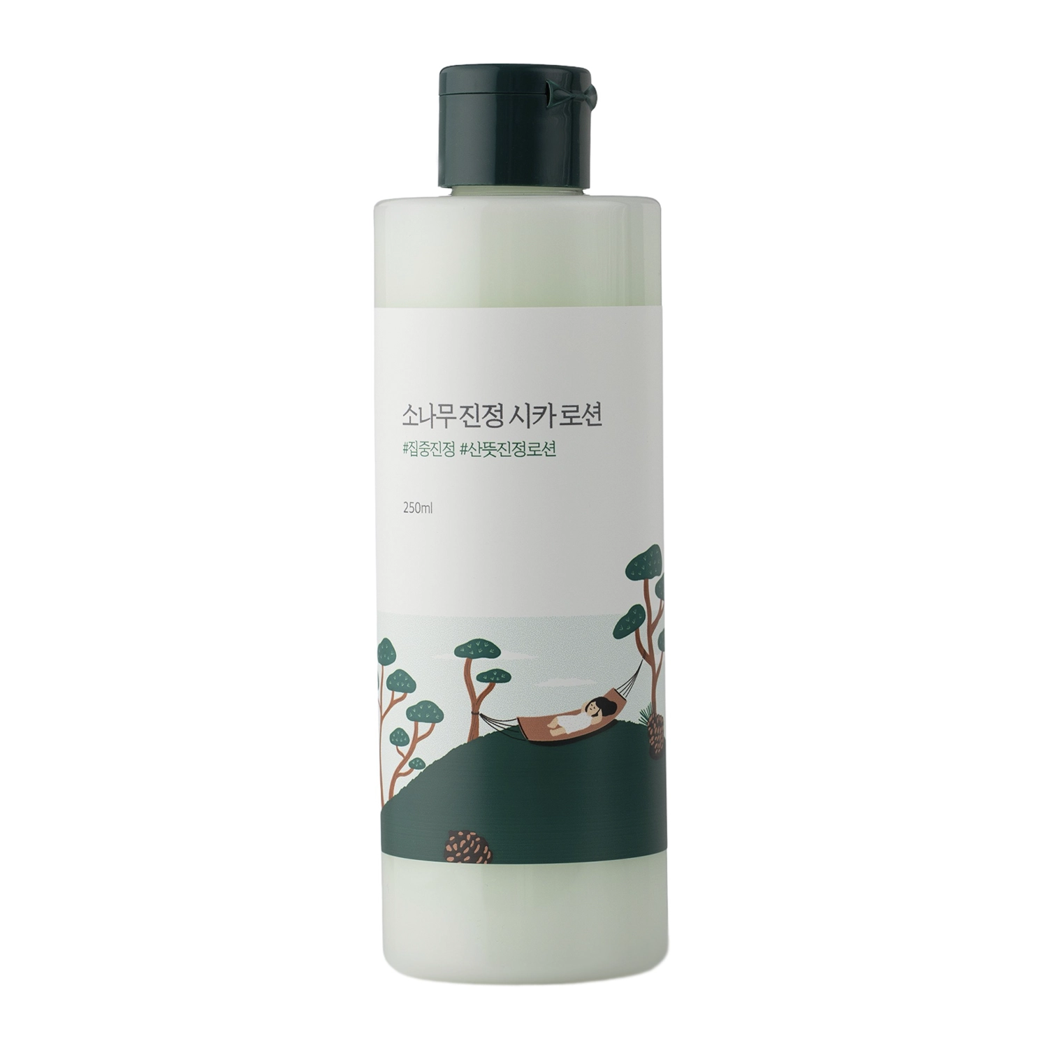 Round Lab - Pine Calming Cica Lotion - nomierinošs ķermeņa balzams jutīgai vai problemātiskai ādai. Kosmētikas līdzekļa sastāvā atrodamas veselas piecas vērtīgas sastāvdaļas, kas iegūtas no gotu kolas. Pateicoties tām, balzams intensīvi atjauno un paātrina iekaisušas un bojātas ādas dzīšanu. Priežu lapu ekstraktam piemīt pretiekaisuma īpašības, tas aizsargā ādu no brīvajiem radikāļiem un ārējiem faktoriem, piemēram, vēja, UV starojuma, putekļiem vai temperatūras atšķirībām. Losjona sastāvā esošā lipohidroksiskābe samazina melnos punktus, maigi attīra un noloba atmirušo ādu, padarot ādu gludu un maigu. Tikmēr glikoproteīnu un hialuronskābes ar dažāda lieluma daļiņām pievienojums palīdz mazināt apsārtumus un kairinājumus, kā arī nodrošina pietiekamu ādas mitrināšanu.