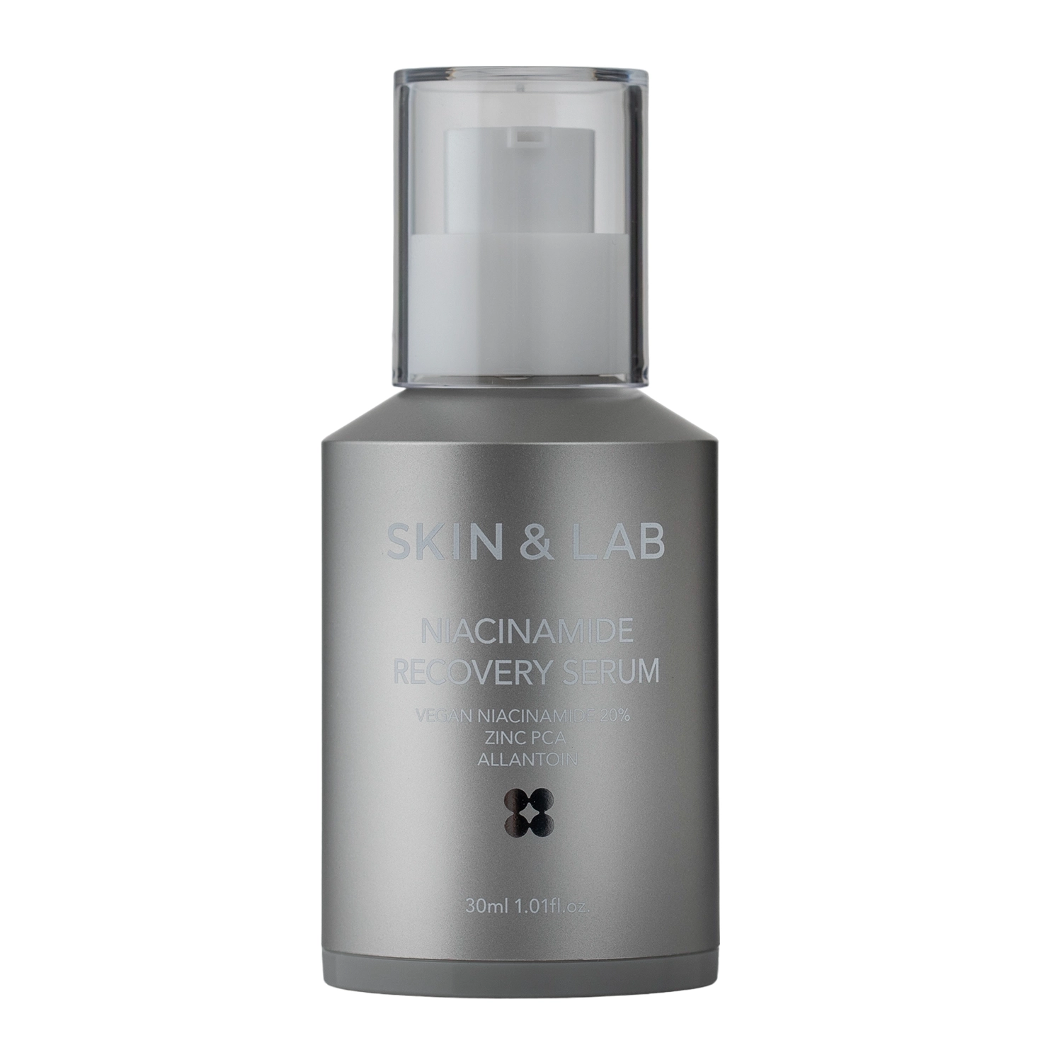 Skin&Lab- Niacinamide Recovery Serum - serums sejai. Tā sastāvā ir 20 % niacinamīda . Tā ir sastāvdaļa, kas balina ādu, regulē sebuma sekrēciju un novērš plankumus. Alantoīns un cukurs trehalozi palīdz nomierināt kairinājumus un mitrina epidermu. Savukārt cinka PCA kavē baktēriju vairošanos, kas izraisa pinnes bojājumu veidošanos, un samazina sebuma veidošanos, savukārt ektīns atbalsta reģenerācijas procesu un mitrina.
