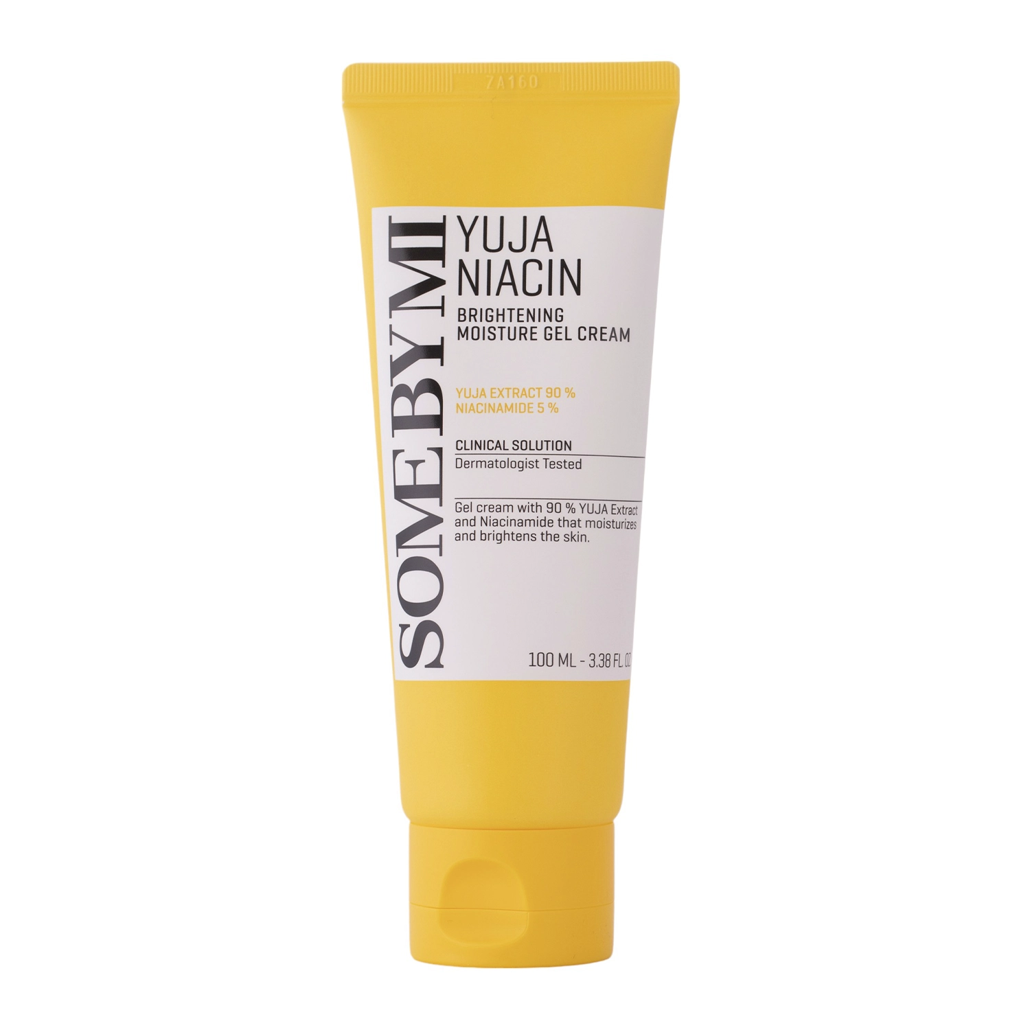 Some By Mi - Yuja Niacin Brightening Moisture Gel Cream - korejiešu želejas konsistences krēms ikdienas sejas kopšanai. Kosmētikas sastāvā esošais juzu augļu ekstrakts izgaismo ādu un novērš brīvo radikāļu kaitīgo ietekmi. Pievienotais niacinamīds izlīdzina ādas toni un sašaurina paplašinātās poras. Gotu kolas ekstrakts veicina epidermas atjaunošanu un tam ir mitrinoša iedarbība, bet trīs C vitamīna formas izgaismo ādas pigmentāciju. Savukārt glutations novērš pārmērīgu ādas taukainību un paildzina C vitamīna aktivitāti krēma sastāvā. Produkta formula ir bagātināta ar arbutīnu, kas palīdz mazināt pigmentāciju, kā arī pastiprina kosmētikas līdzekļa izgaismojošu iedarbību.