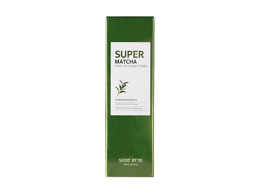 Some By Mi - Super Matcha Pore Tightening Toneris - Tonika sastāvā esošajam zaļās tējas ekstraktam ir pretiekaisuma iedarbība, nomierina kairinājumu, centella Asiatica ekstrakts paātrina brūču dzīšanu, bet centella Asiatica aktīvajām sastāvdaļām, proti, asiatikozīdam un madekasskābei , ir pretiekaisuma un antibakteriāla iedarbība. Baltā vītolu mizas ekstrakta pievienojums ir salicilskābes prekursoru avots, tāpēc tas maigi pīlings epidermu, tam ir seboregulējoša un attīroša iedarbība, savukārt tējas koka ekstraktam ir pretakne, savelkoša un pretiekaisuma iedarbība.