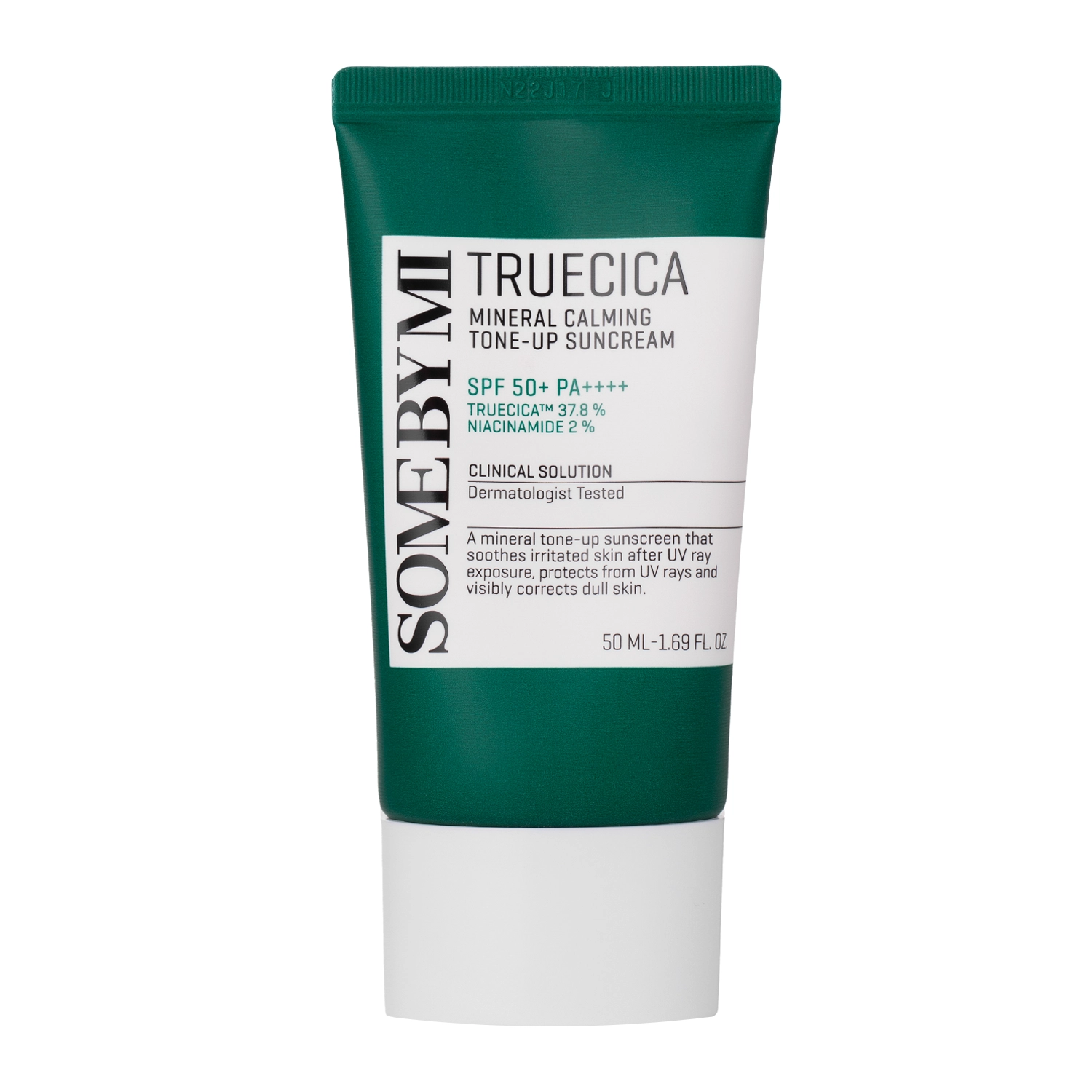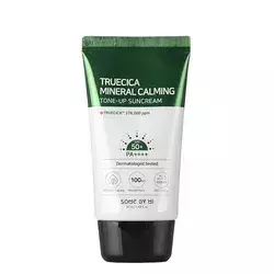 Some By Mi - Truecica Mineral Calming Tone-Up Suncream SPF50+/PA++++ – pretiekaisuma saules aizsargkrēms ar kombinētiem filtriem un tējas koka hidrolātu. Produkts bagātināts ar ādu nomierinošām sastāvdaļām, tostarp 2% niacinamīdu, alvejas lapu ekstraktu un 37,8% TRUECICA™ kompleksu. Šī kombinācija efektīvi veicina kairinātas ādas atjaunošanos un sniedz atvieglojumu sausai vai apsārtušai ādai. Krēms nodrošina augstu UV aizsardzību ar SPF50 un PA++++, maigi izlīdzina ādas toni, neatstāj baltu kārtiņu un piešķir satīna finišu.