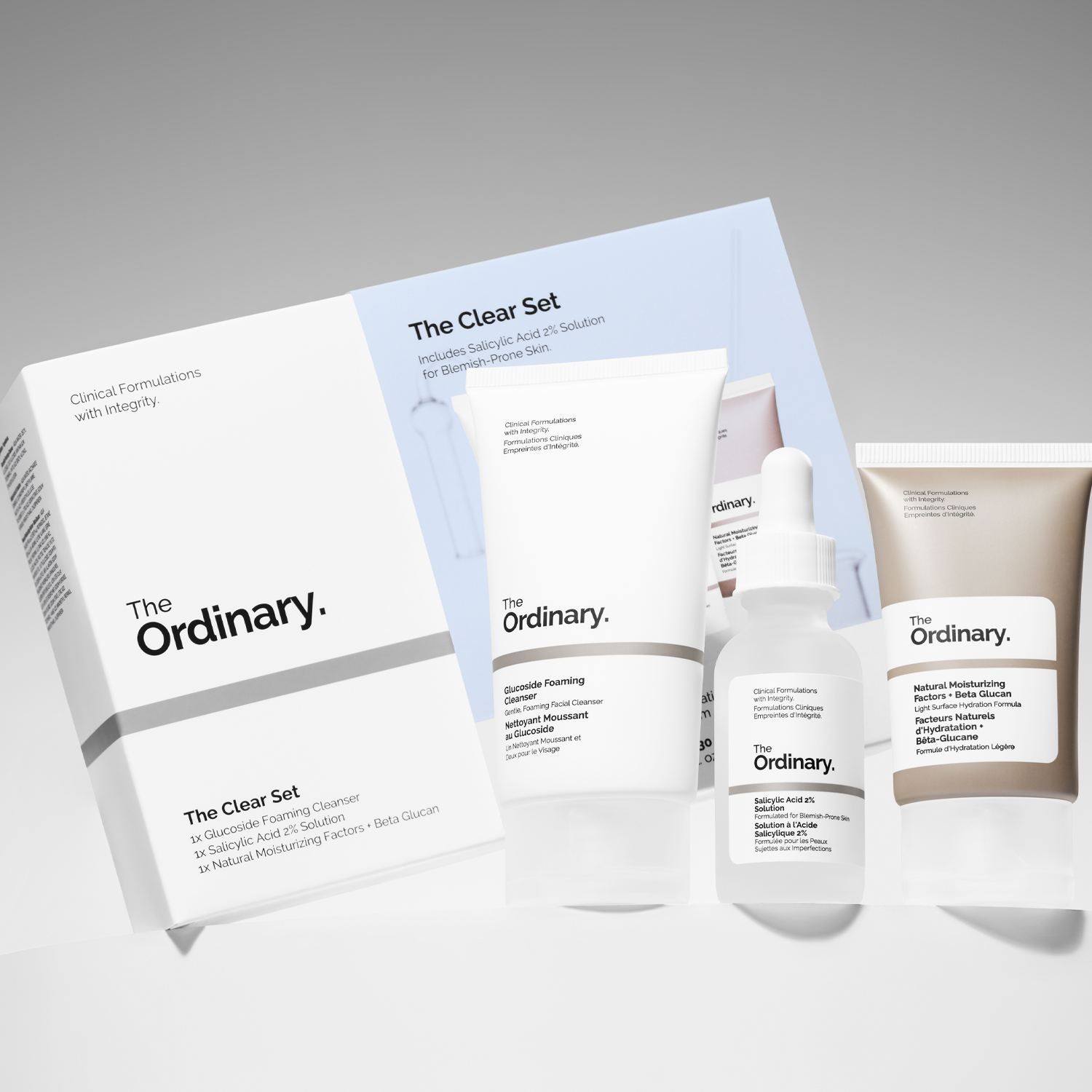 The Clear Set – 3 soļu ādas kopšanas komplekts, kas īpaši izstrādāts ādai ar noslieci uz izsitumiem. Komplektā ietilpst: