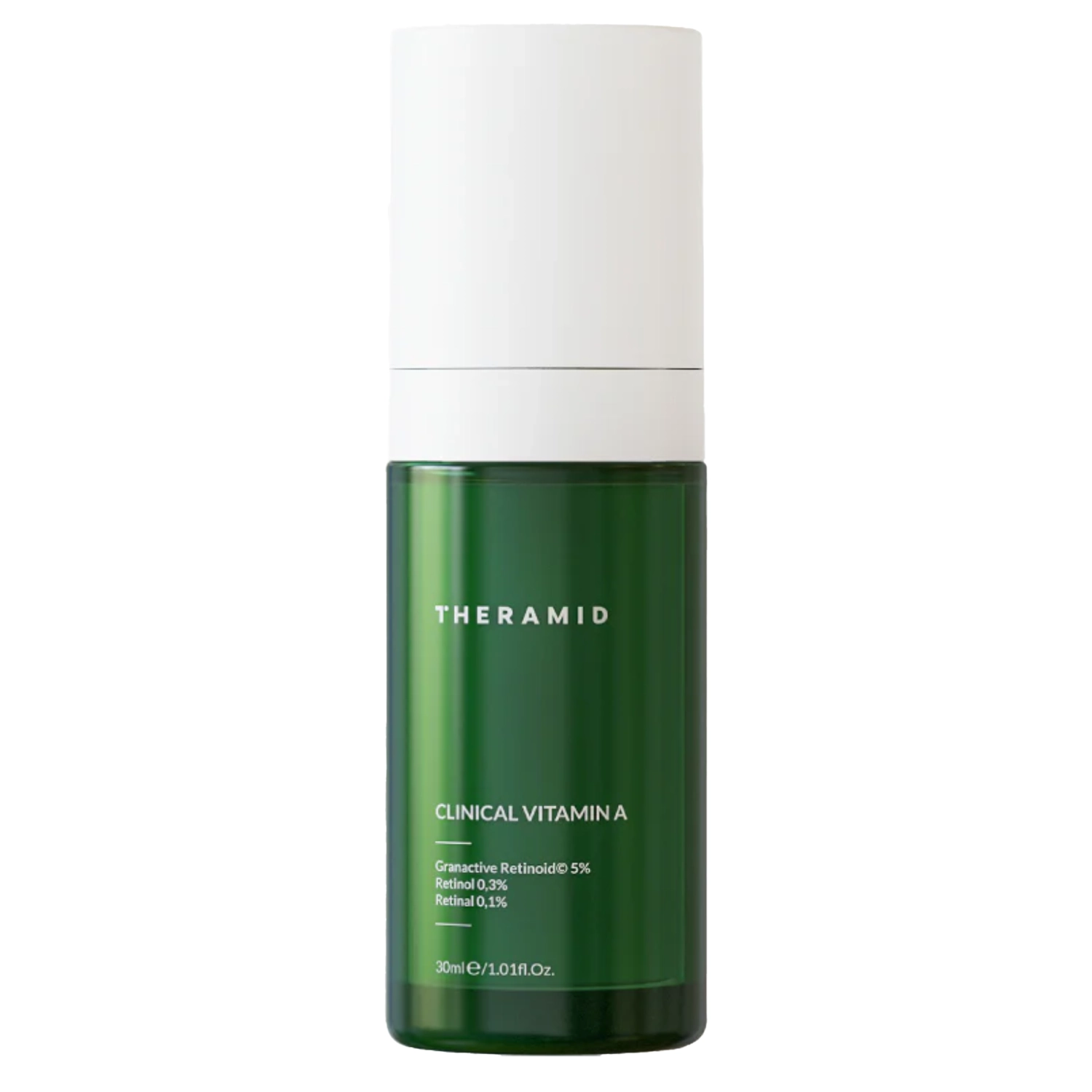 Theramid - Clinical Vitamin A - uzlabota procedūra īpaši ādai ar novecošanās pazīmēm. Tā satur 3 A vitamīna formas -granaktīvo retinoīdu ( hidroksipinakolonaretinoātu )5% koncentrācijā, 0,3% retinolu un 0,1% retinālu. Retinoīdi ietekmē kolagēna un elastīna veidošanos, tāpēc ir pretgrumbu iedarbība, stimulē šūnu atjaunošanos, izlīdzina un izlīdzina ādas tonusu. Turklāt tie samazina ādas taukainību un mazina ādas nepilnības. Sastāvs ir bagātināts ar keramīdi, kas stiprina ādas aizsargbarjeru, atjauno un baro. Savukārt planktona ekstrakts mitrina, nostiprina un nomierina, bet E vitamīns aizsargā pret brīvajiem radikāļiem. Serums darbojas, kamēr jūs guļat, un nodrošina redzamu pretnovecošanās efektu. Kosmētikas sastāvā ir vegāniska formula bez smaržvielām.